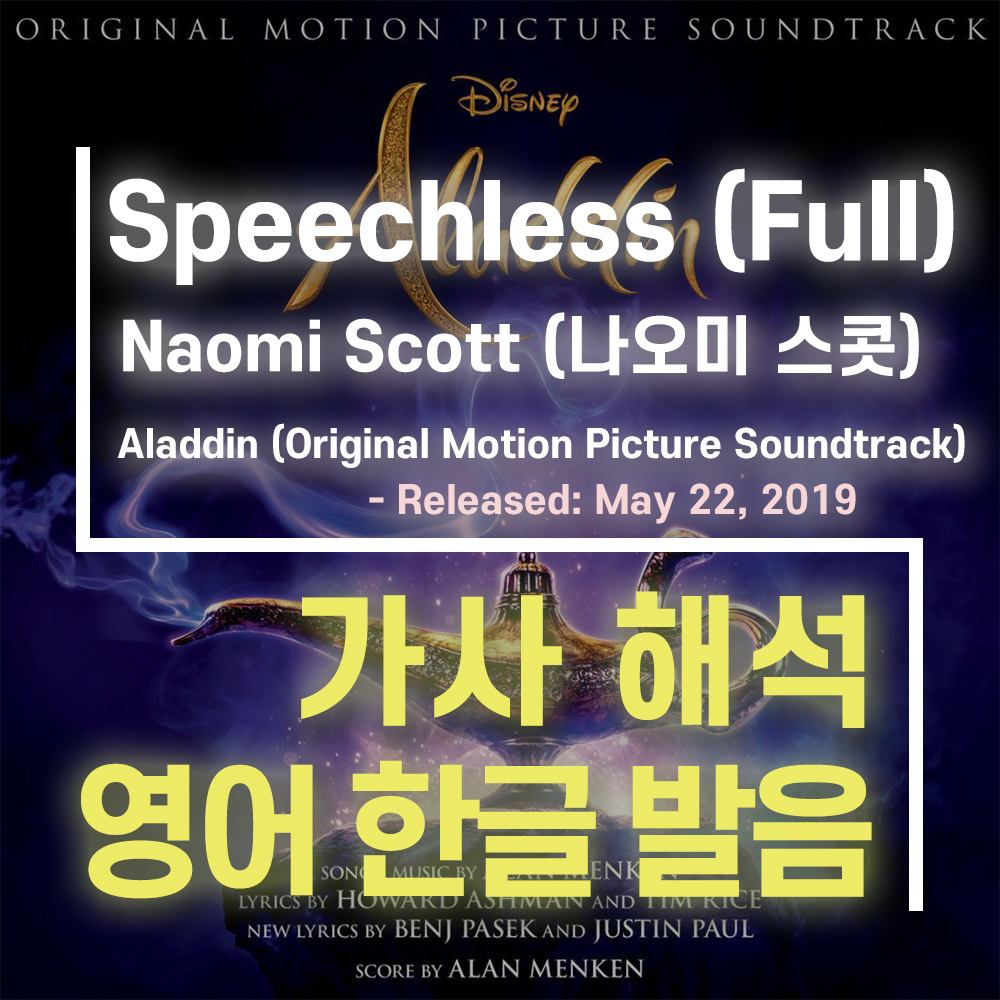 Speechless (Full) - 알라딘 OST(Naomi Scott (나오미 스콧)) [가사 해석, 번역, 영어 한글 발음]