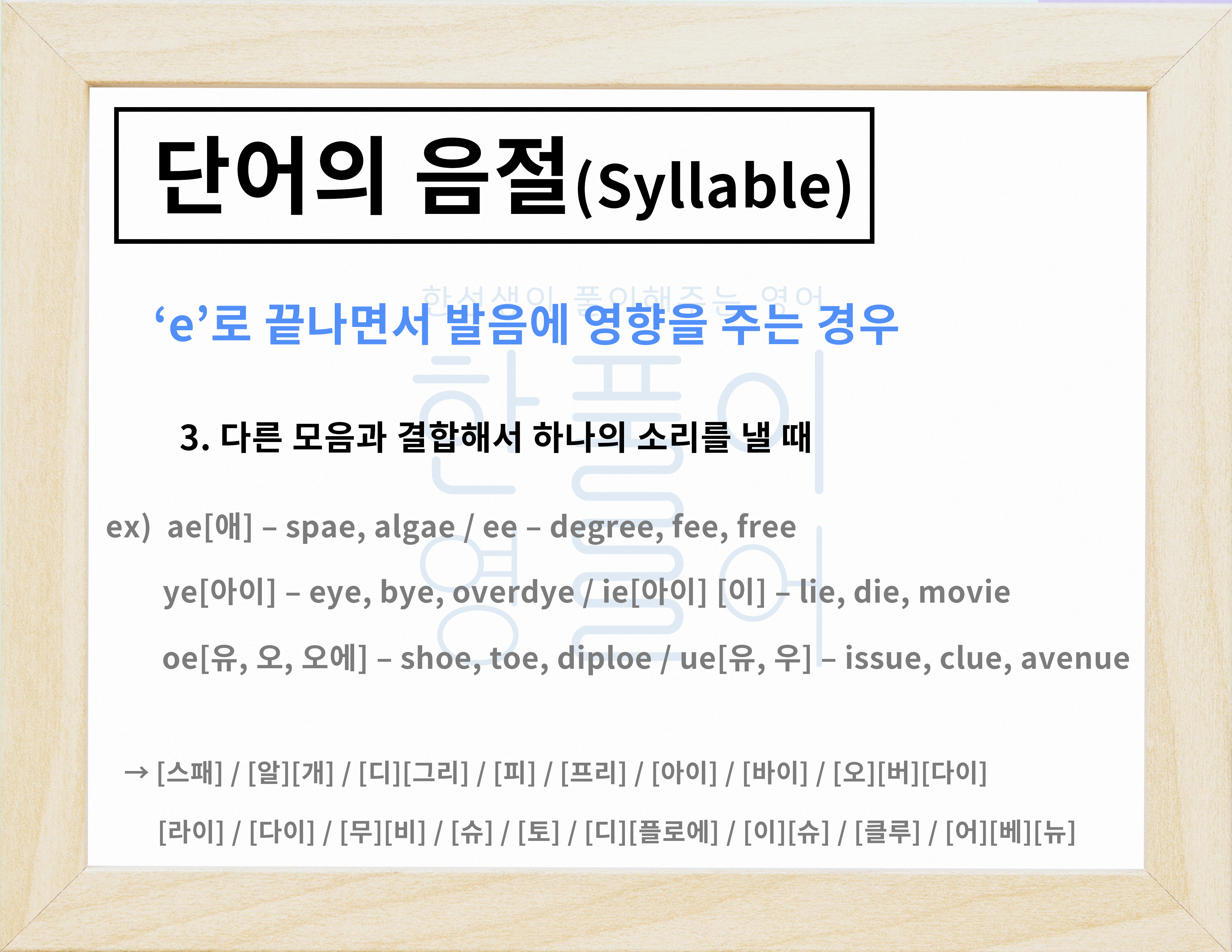 ae(애), ee(이) ue(우) ay(에이), ew(유) 등등 있기도 합니다.