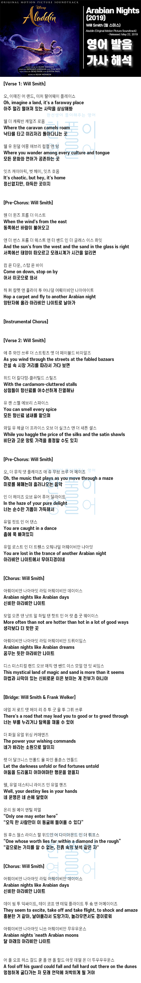 Arabian Nights(2019) - Will Smith(윌스미스) [가사 해석, 번역 / 영어 한글 발음]