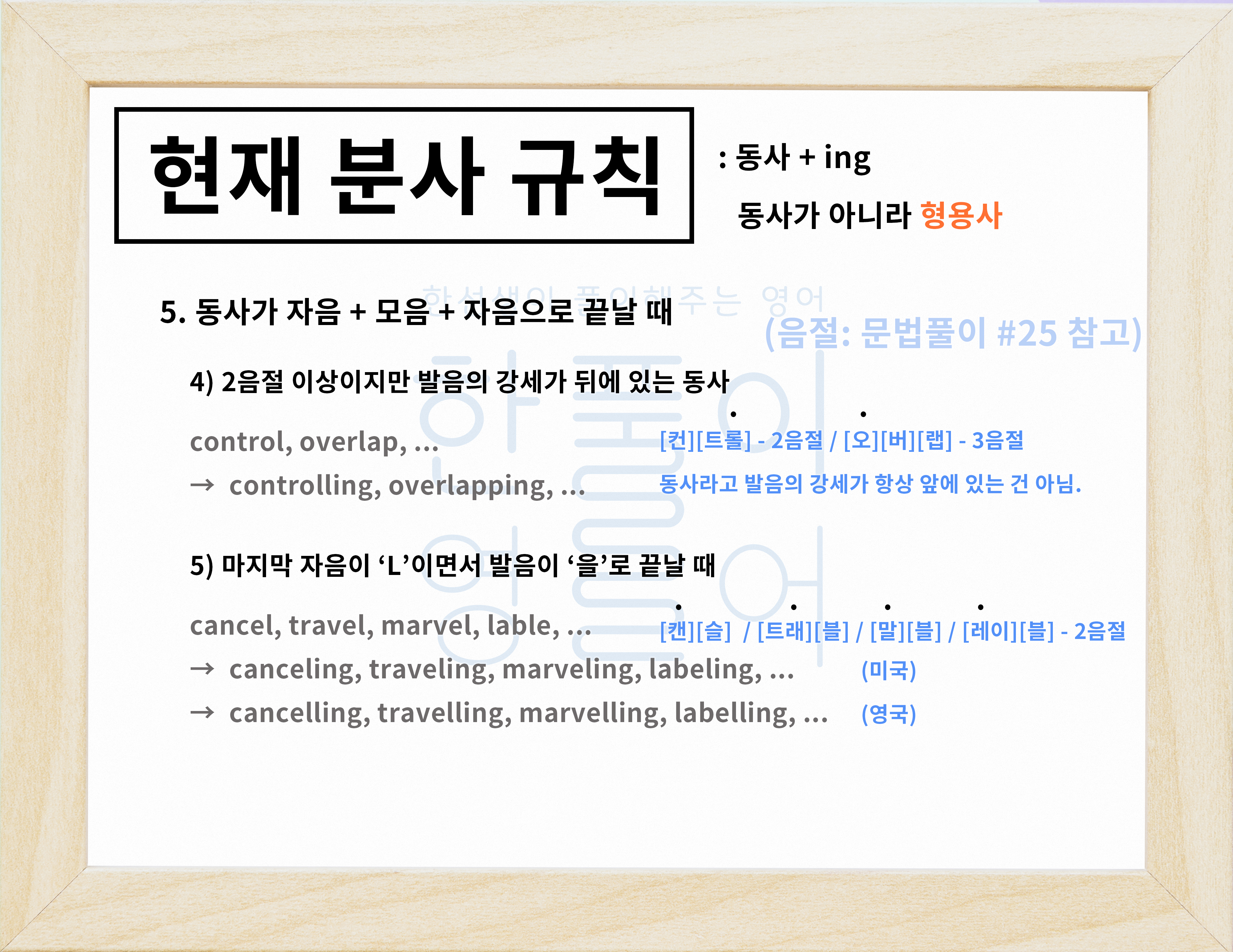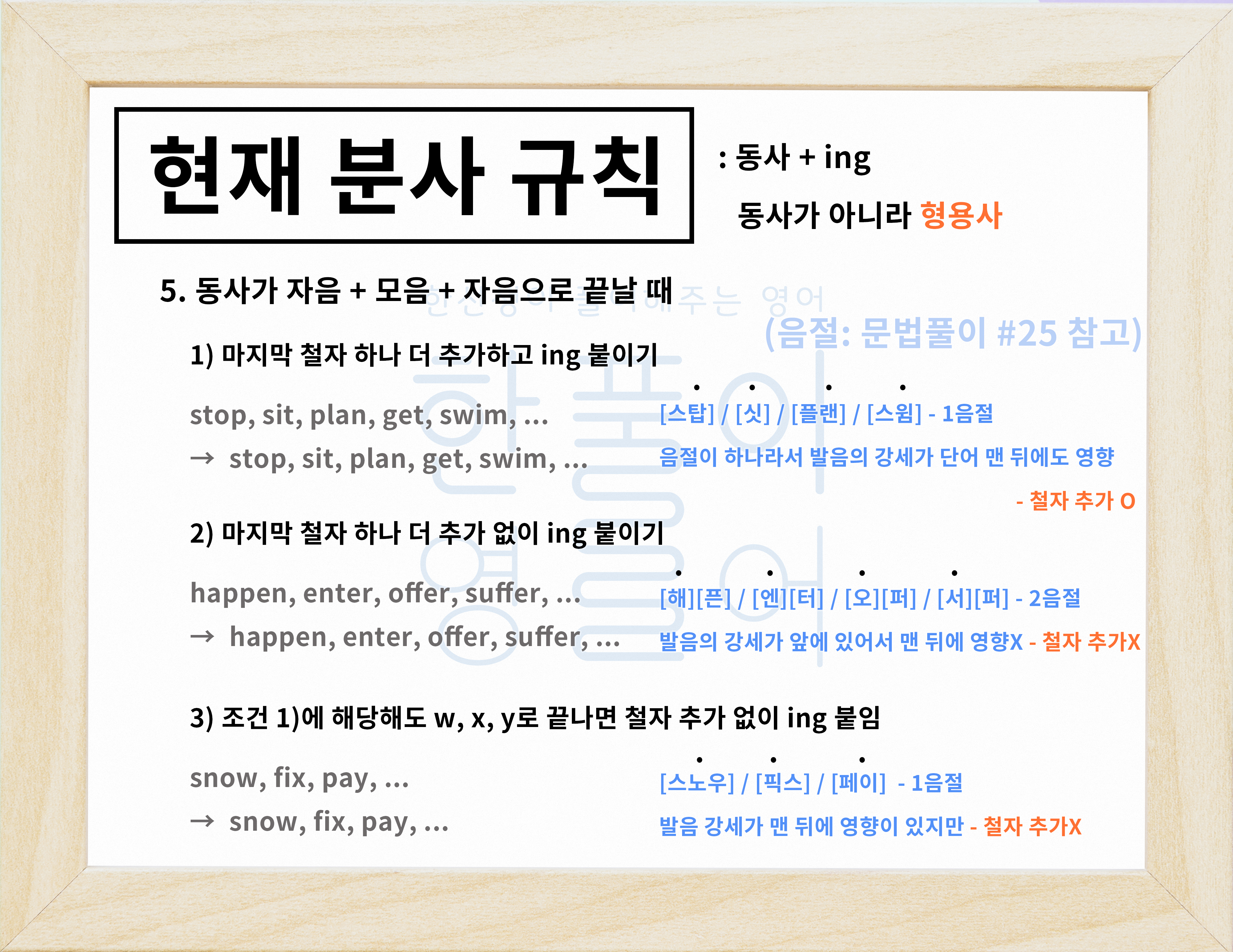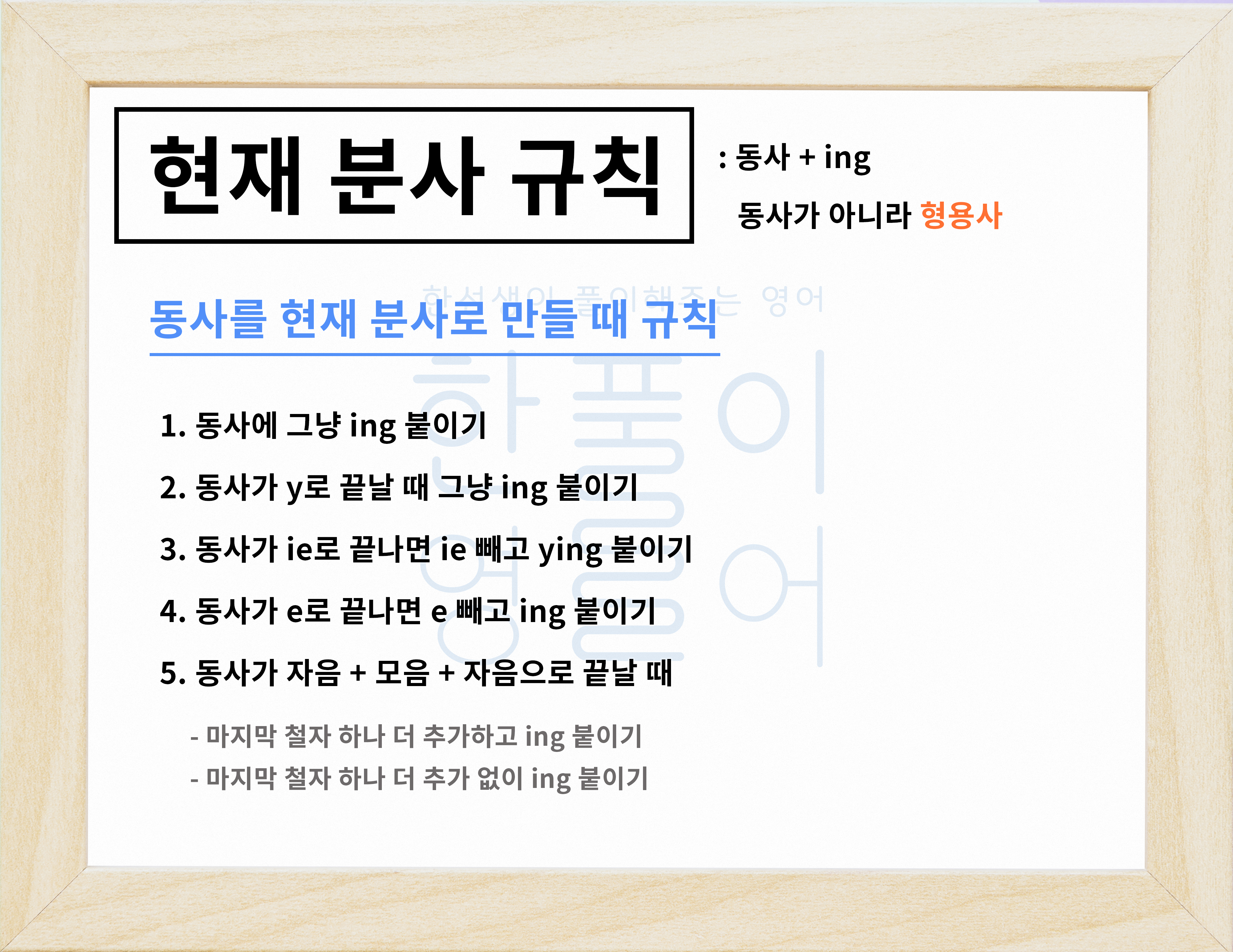 동사를 현재 분사형으로 만드는 규칙(동사+ing) / 동명사 규칙 [영어문법풀이 #28]