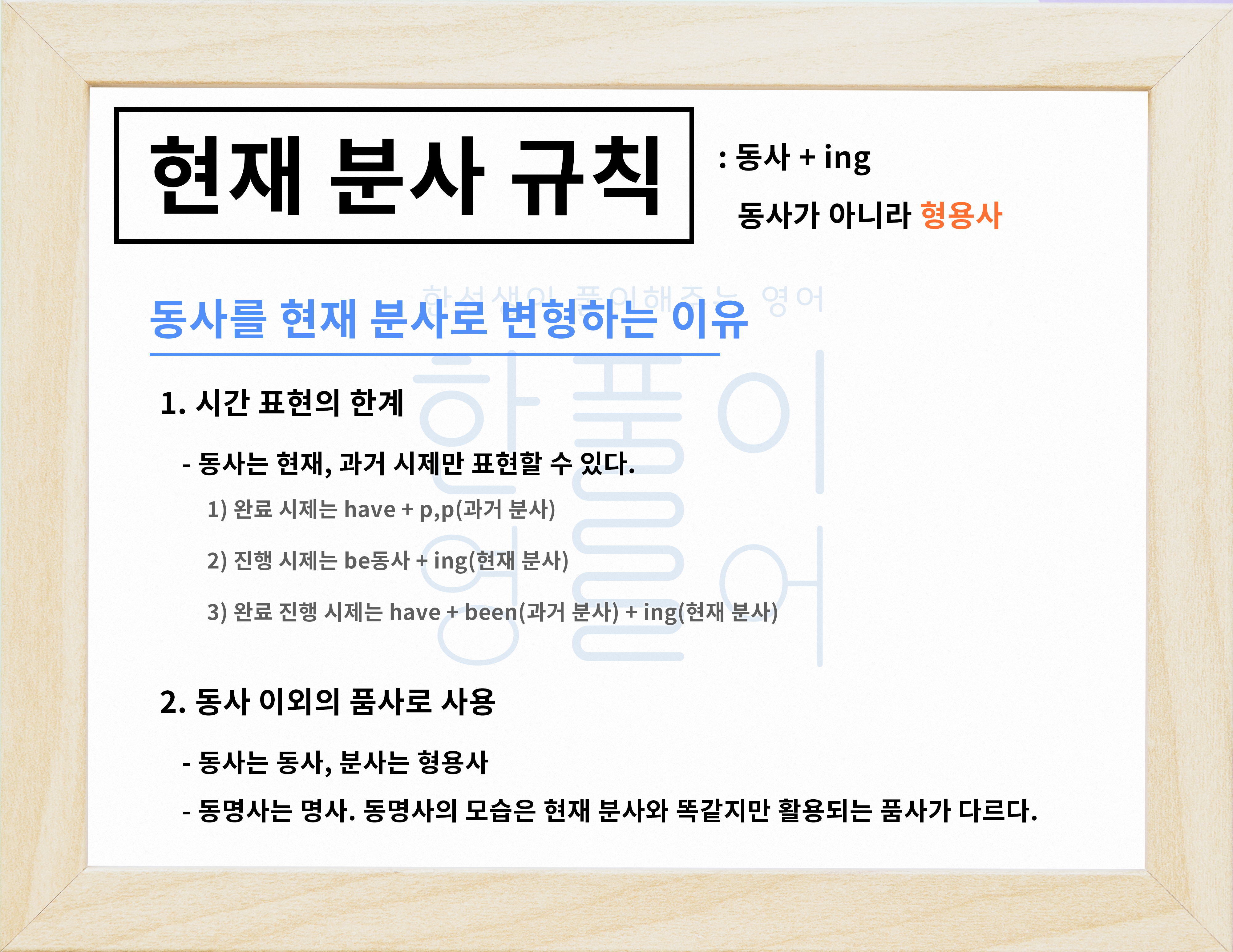 동사를 현재 분사형으로 바꾸는 걸 알아볼게요.