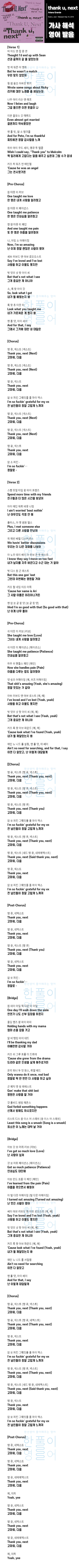 thank u, next - 아리아나 그란데(Ariana Grande) [가사 해석, 번역 / 영어 한글 발음]