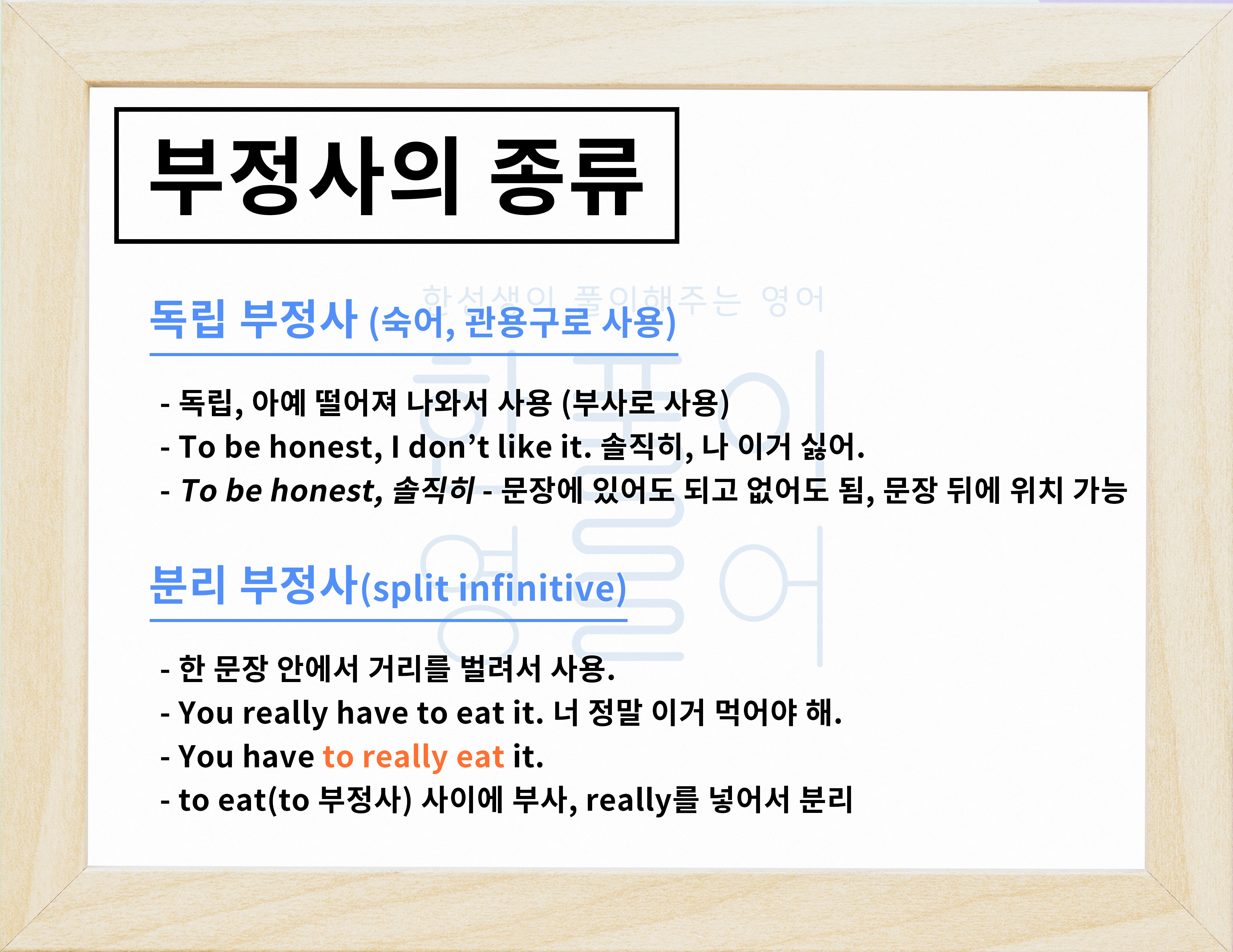부정사의 종류 (To 부정사, 원형 부정사, 완료 부정사, 대부정사, 분리 부정사, 독립 부정사) [영어문법풀이 #30]
