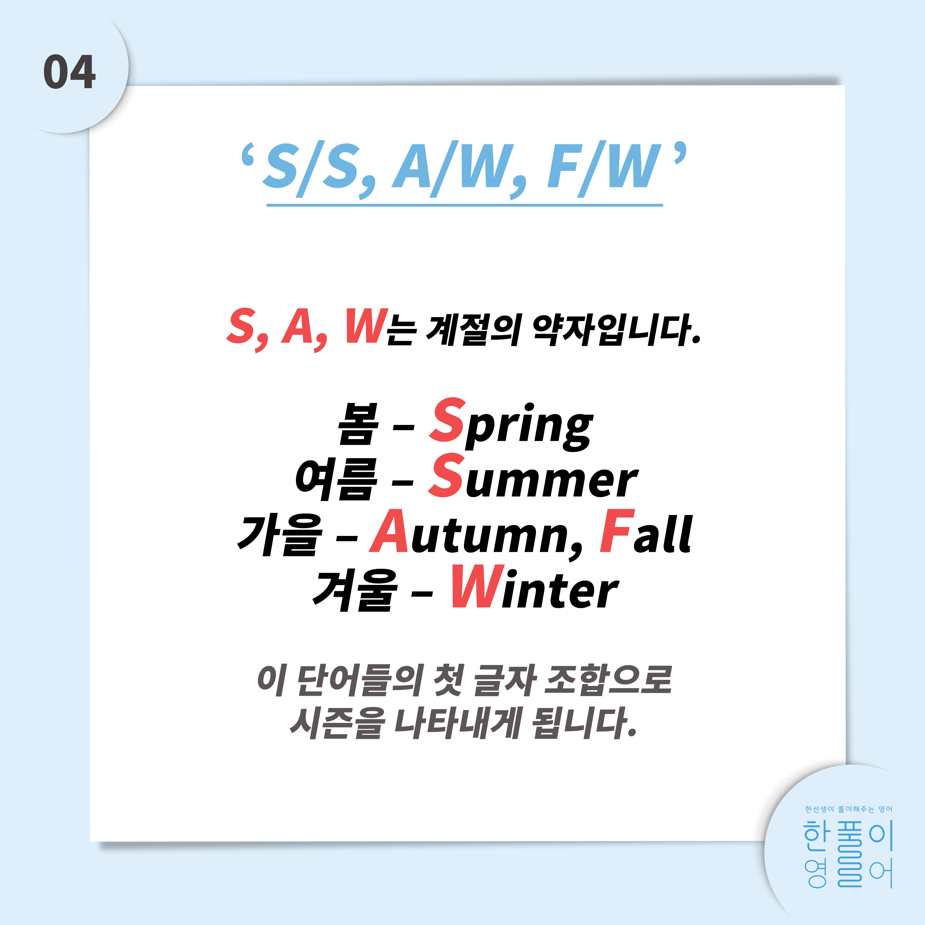 봄/여름/가을/겨울 말이죠.바로 저 알파벳들은