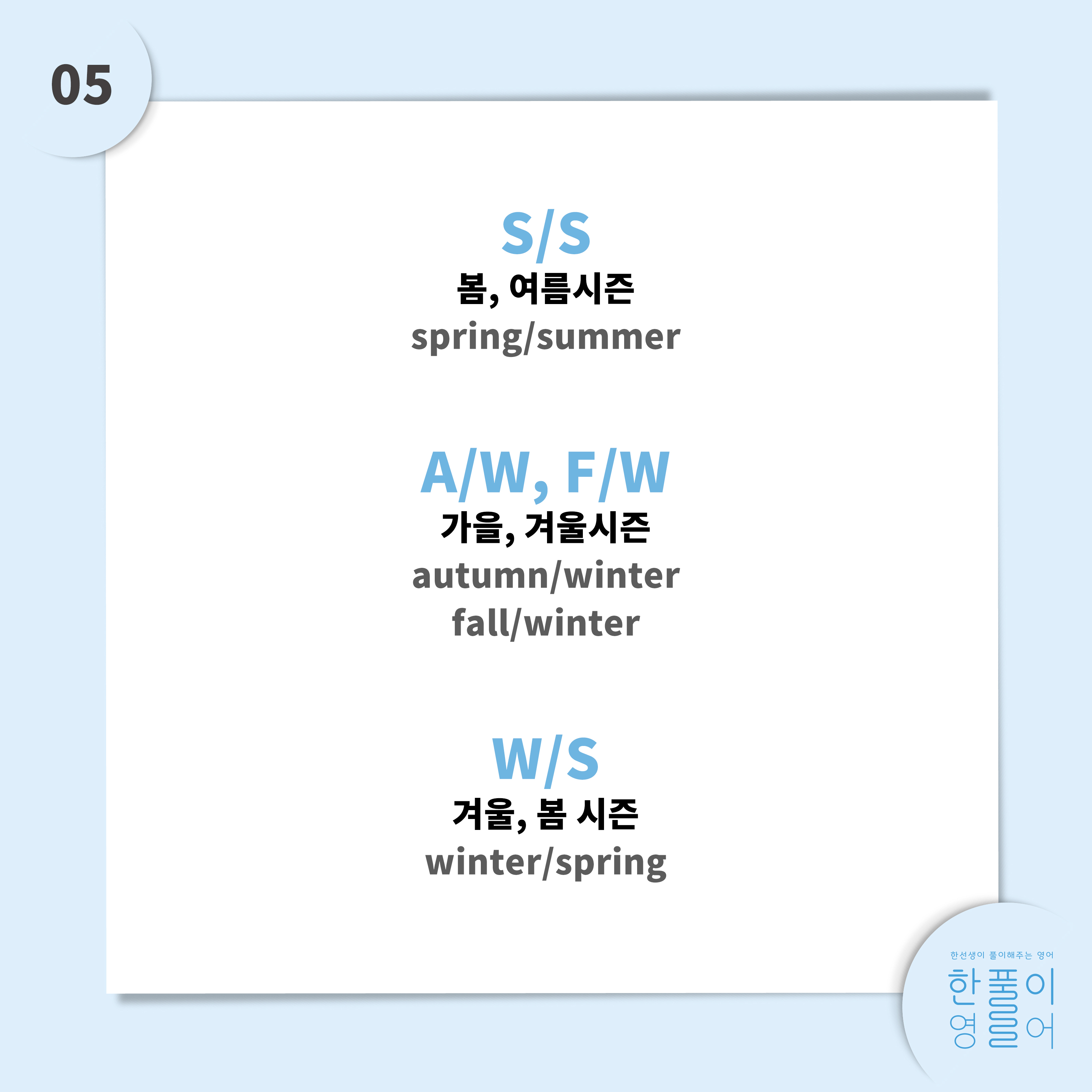 S/S, F/W 등등
