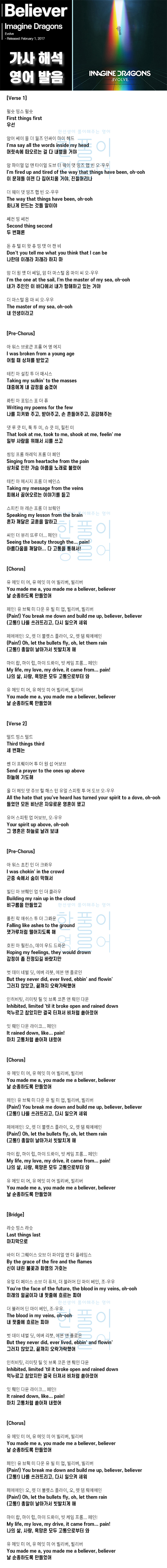 Believer - 이매진 드래곤스 (Imagine Dragons) [가사 해석 / 번역 / 영어 한글 발음]