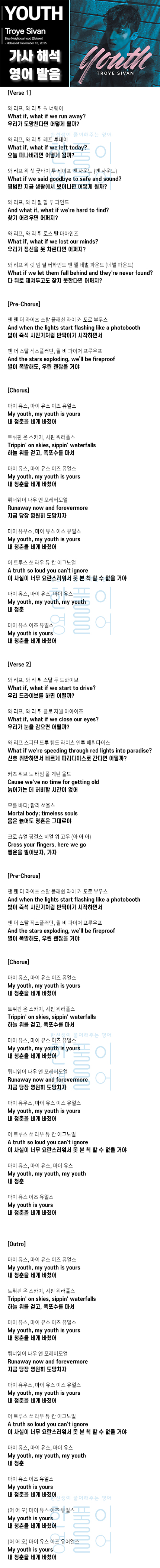 YOUTH - 트로이 시반 (Troye Sivan) [가사 해석 / 번역 / 영어 한글 발음]