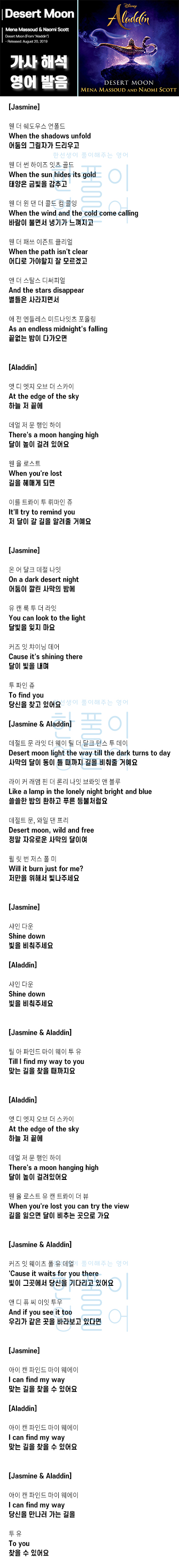 Desert Moon - 알라딘 OST, 삭제 장면 - 미나 메수드&나오미 스콧 (Mena Massoud & Naomi Scott) [가사 해석 / 번역 / 영어 한글 발음]