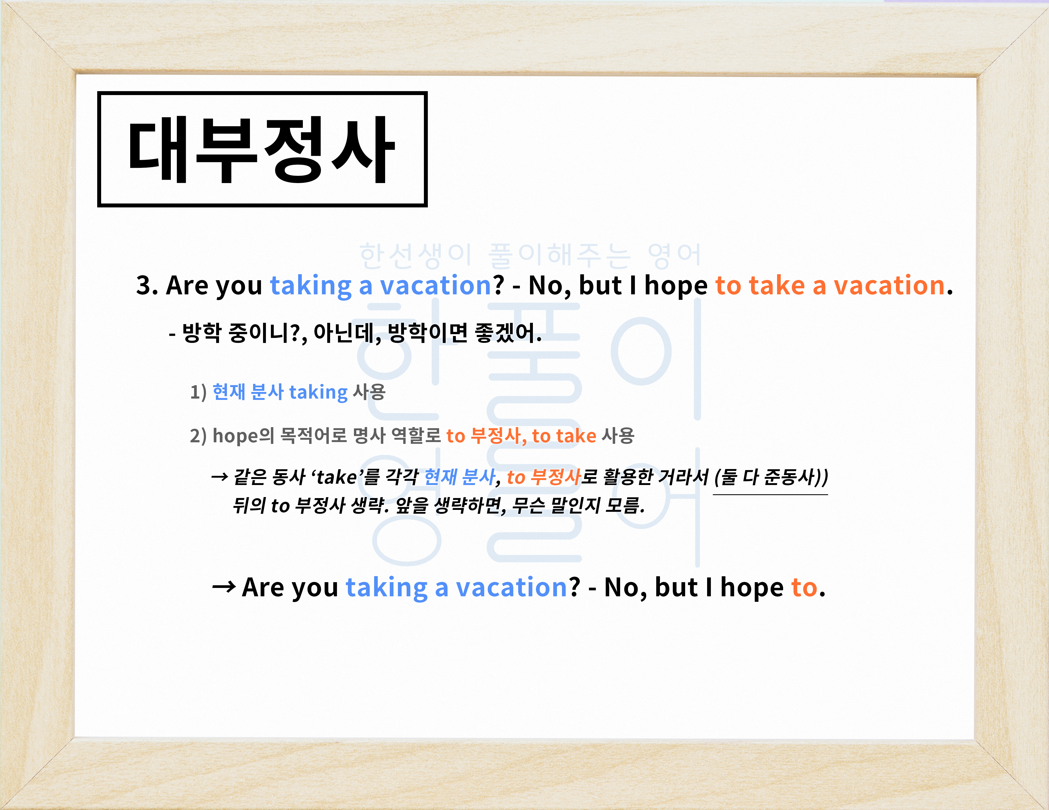 그러면 대부정사를 문장으로 볼게요