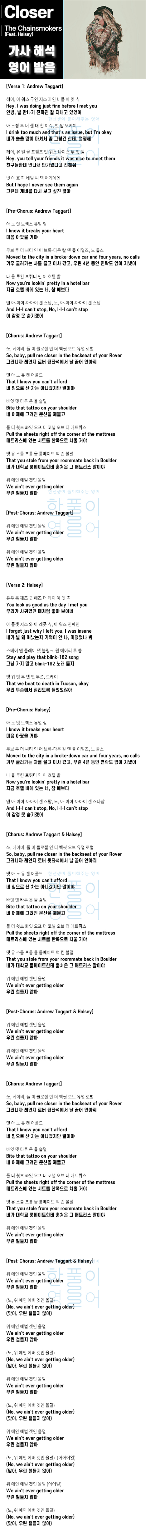 Closer - 체인스모커스[Feat. 할시] (The Chainsmokers[Feat. Halsey]) [가사 해석 / 번역 / 영어 한글 발음]