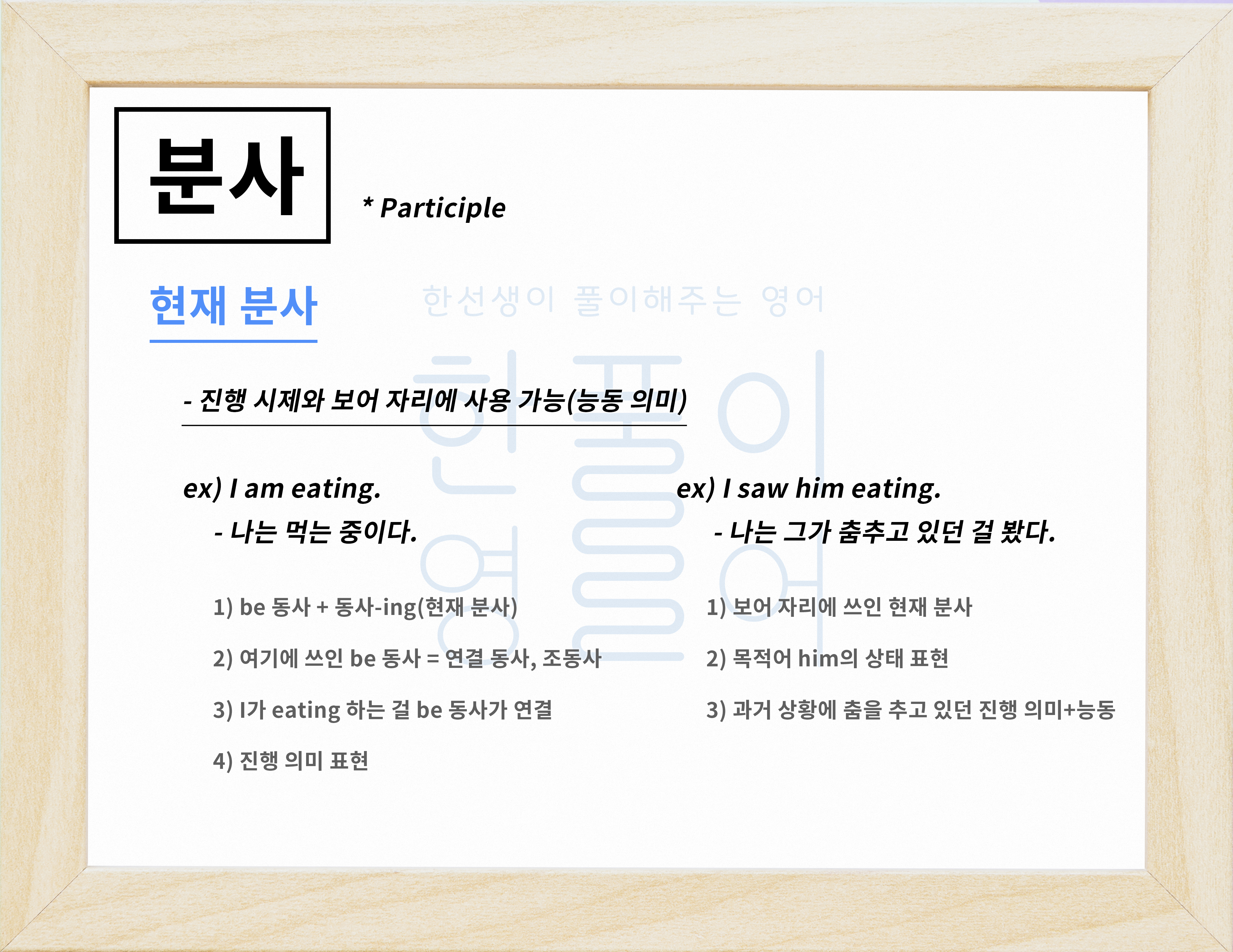 현재 분사 개념, 뜻! 언제 어떻게 사용할까? 진행 시제/보어/능동 [영어 문법 풀이 #40]