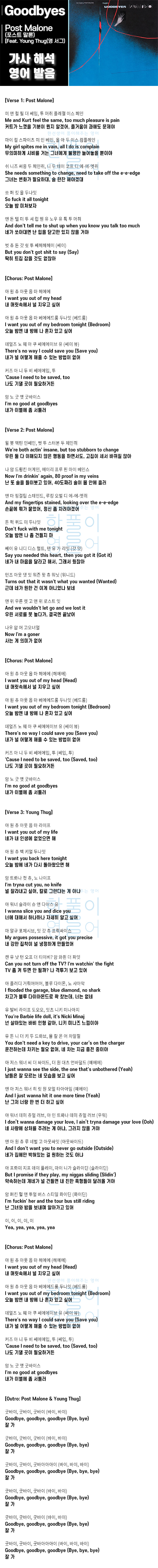 Goodbyes - 포스트 말론 (Post Malone); Feat. 영 서그(Young Thug) [가사 해석 / 번역 / 영어 한글 발음]