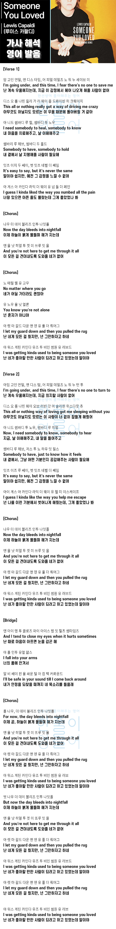 Someone You Loved - 루이스 카팔디 (Lewis Capaldi) [가사 해석 / 번역 / 영어 한글 발음]