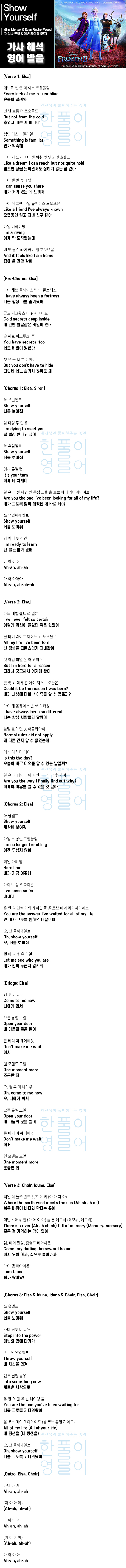 Show Yourself [가사 해석/번역/발음] - 겨울 왕국2 OST : 이디나 멘젤 & 에번 레이철 우드