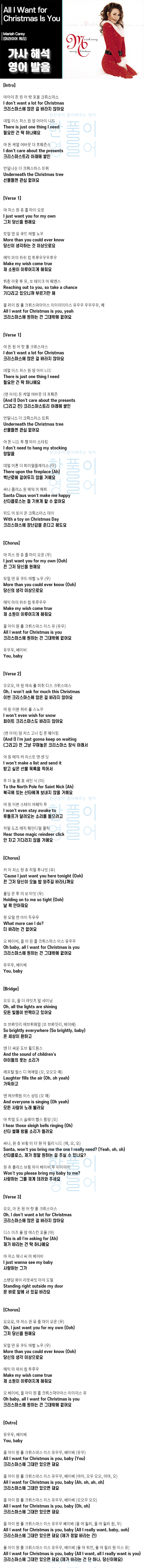 All I Want for Christmas Is You - 머라이어 캐리 (Mariah Carey) [가사 해석, 번역 / 영어 한글 발음]