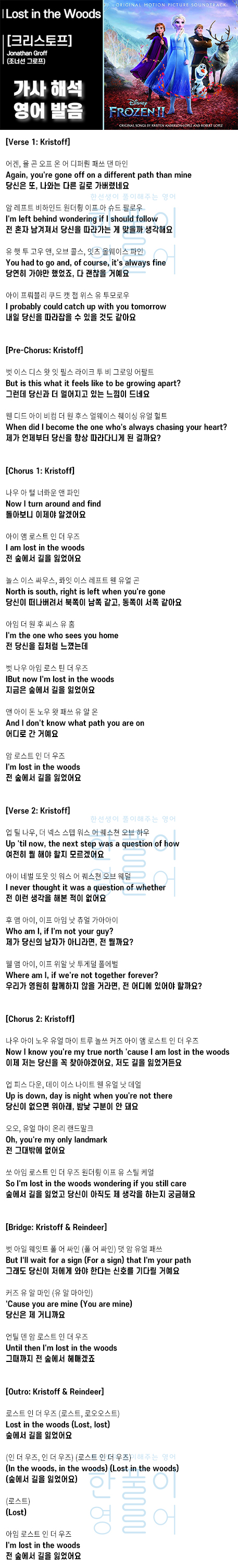 Lost in the Woods - 크리스토프 (조너선 그로프Jonathan Groff) [가사 해석, 번역 / 영어 한글 발음]
