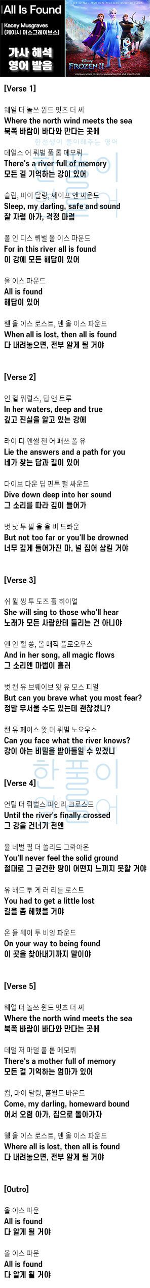 All Is Found (자장가, 삭제곡) - 이두나 겨울국2 OST [가사 해석, 번역 / 영어 한글 발음]