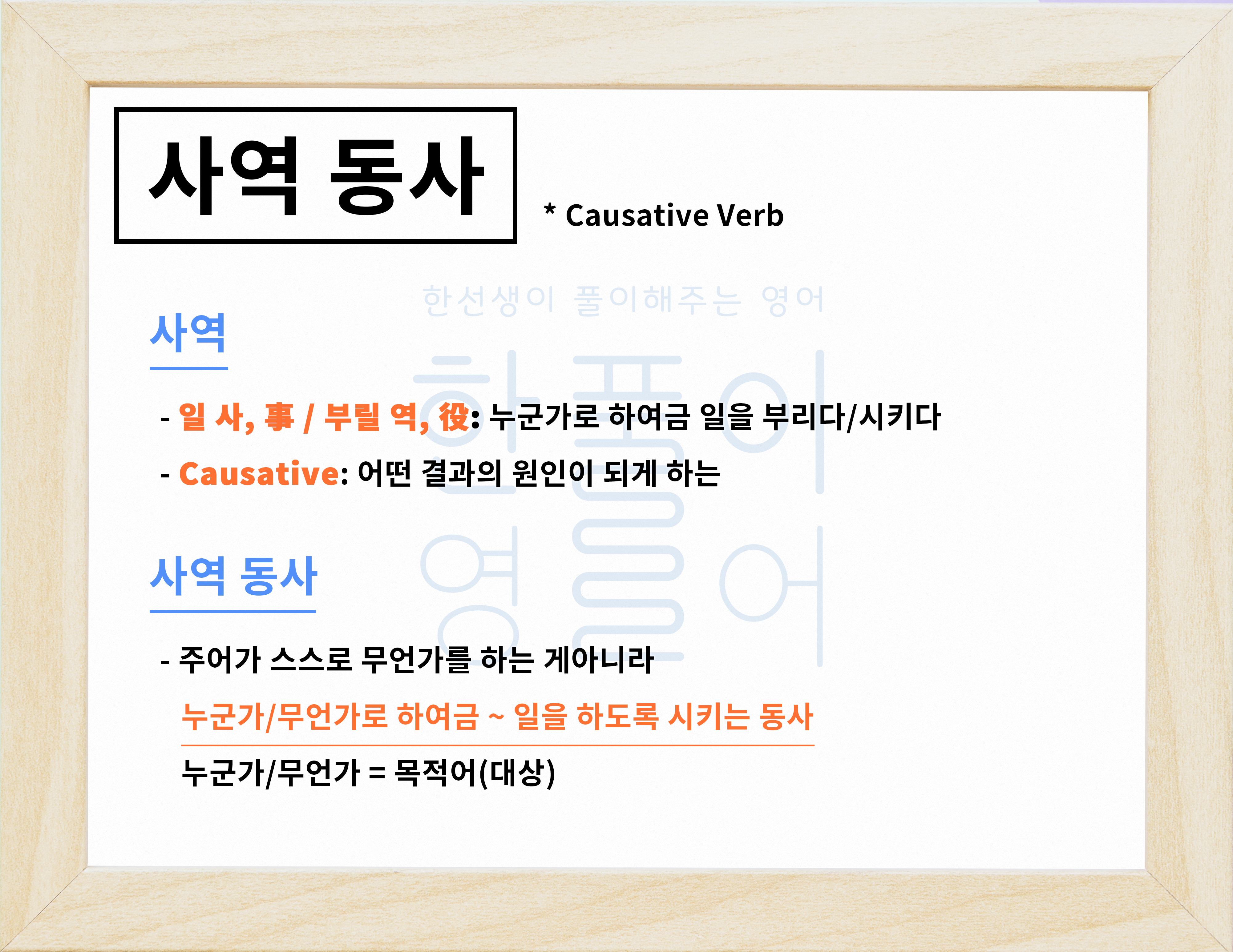 사역 동사 개념 바로 잡기! 사역 의미와 뜻 [영어 문법 풀이 #48]