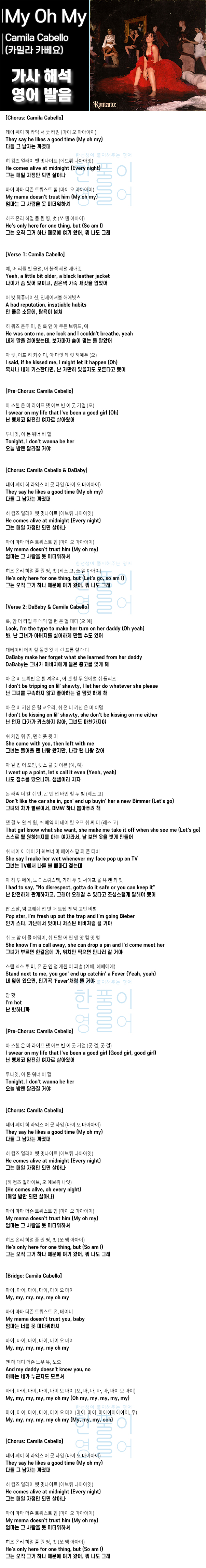 My Oh My (Feat. DaBaby) - Camila Cabello (카밀라 카베요) [가사 해석, 번역 / 영어 한글 발음]