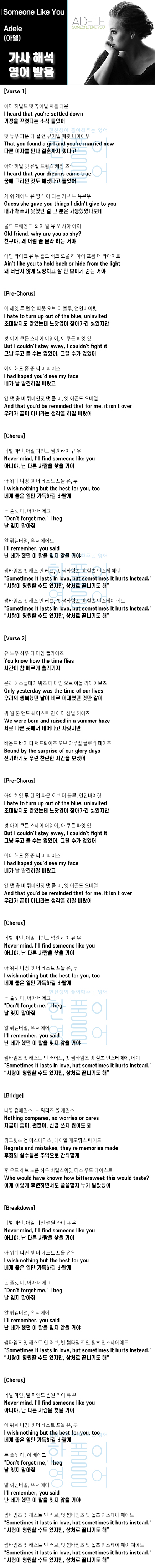Someone Like You - Adele (아델) [가사 해석, 번역 / 영어 한글 발음]
