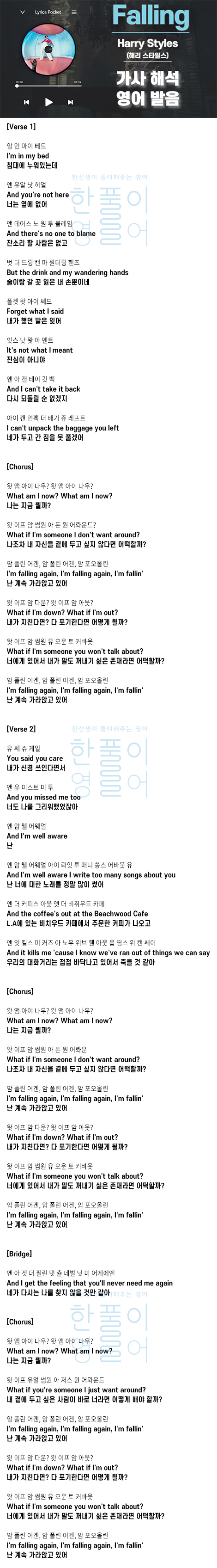 Falling - Harry Styles (해리 스타일스) [가사 해석, 번역 / 영어 한글 발음]