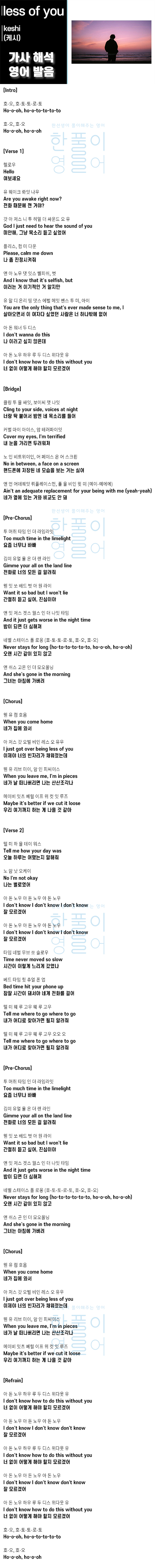 less of you - keshi (케시) [가사 해석, 번역 / 영어 한글 발음]