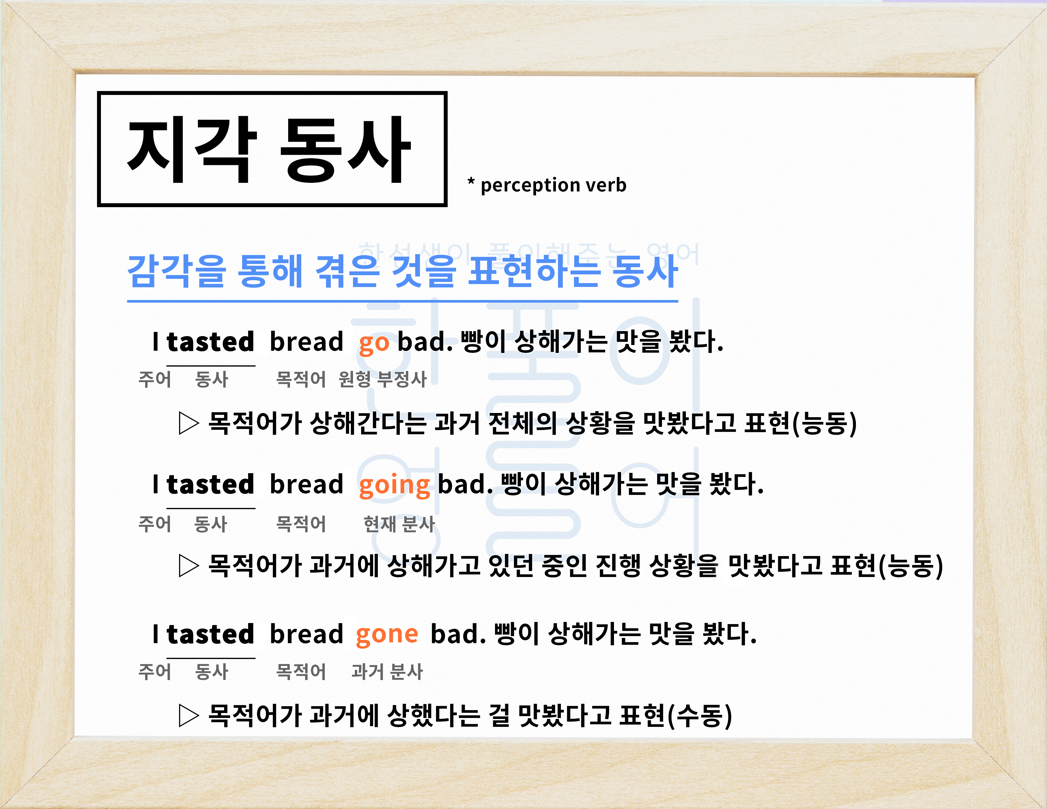 결국 지각 의미를 표현하는 지각 의미 동사에 대해서 알아보도록 해볼게요.
