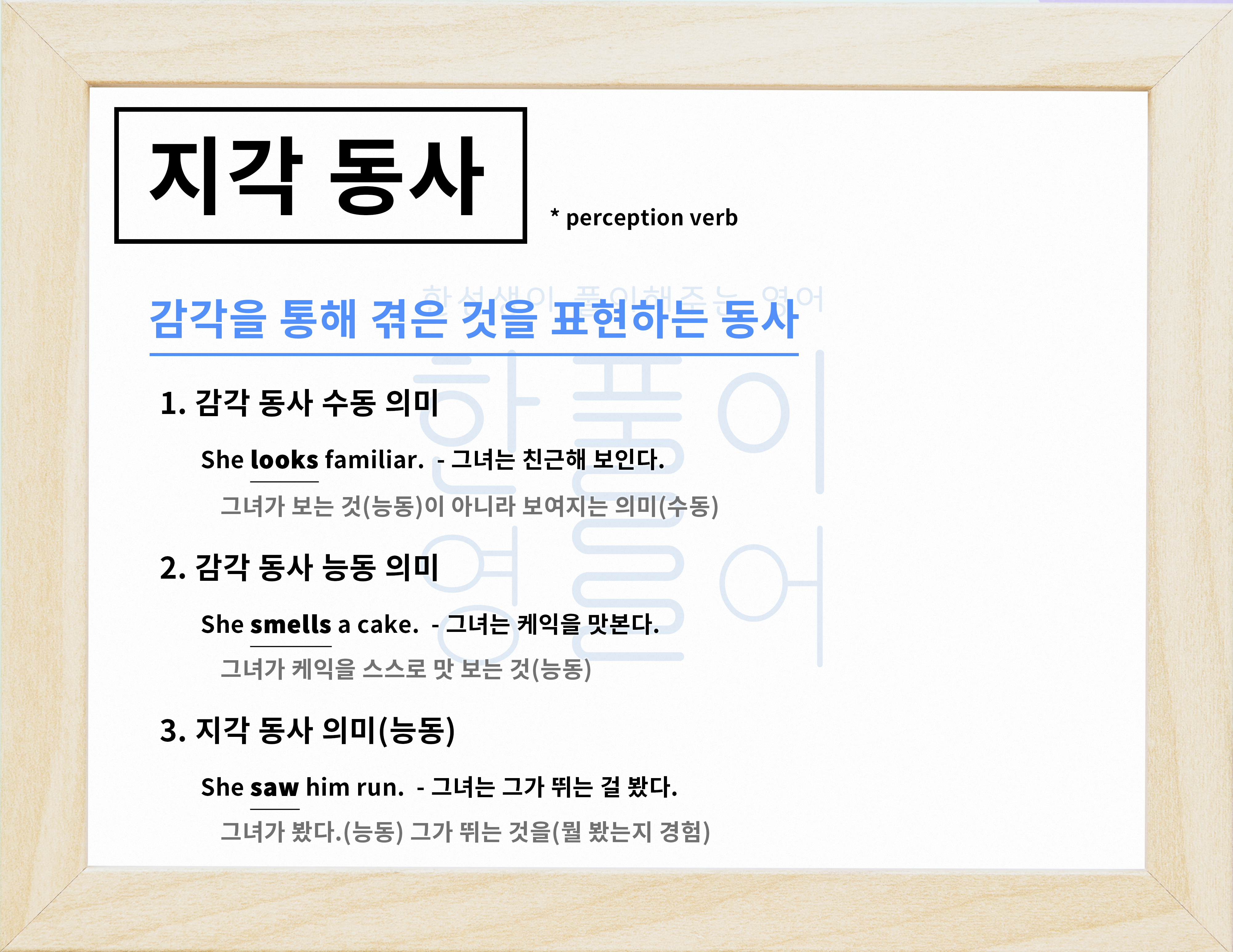 감각 동사의 능동 의미, 3형식, 1형식 문장에서 사용! (+ 조동사, be 동사)[영어문법풀이 #51]