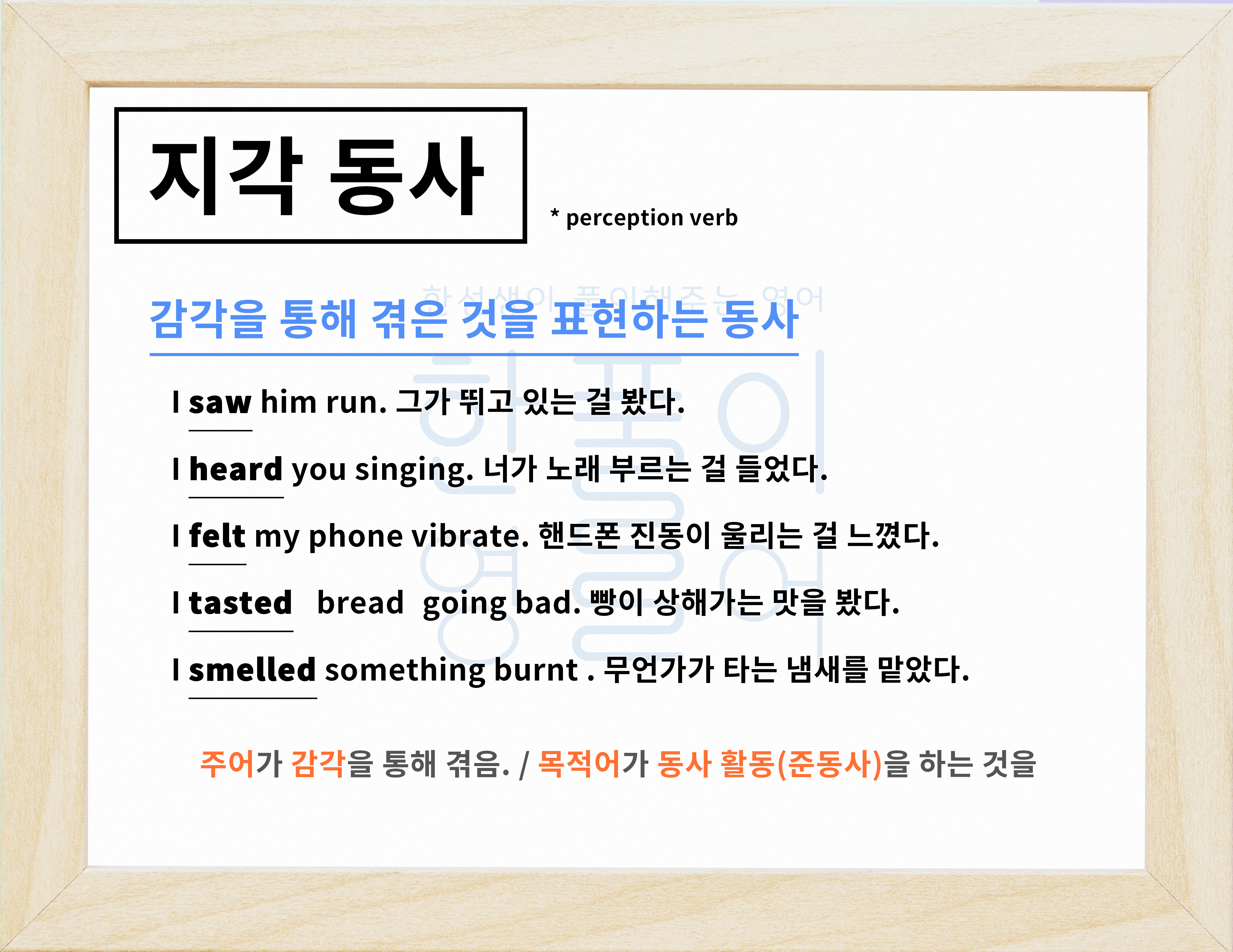 결국 지각 의미를 표현하는 지각 의미 동사에 대해서 알아보도록 해볼게요.