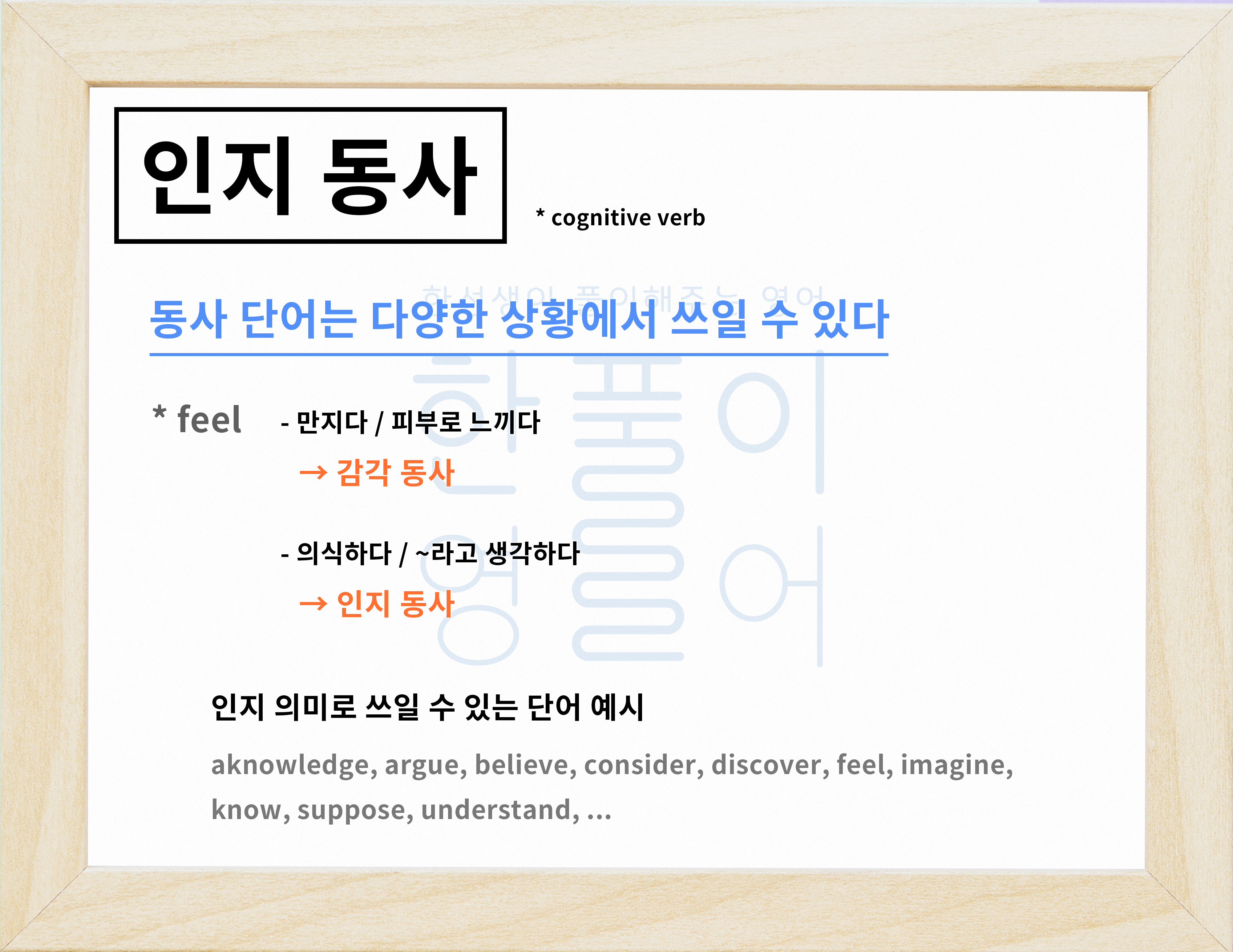 이때 feel을 인지 동사라고 부르게 됐던 겁니다.