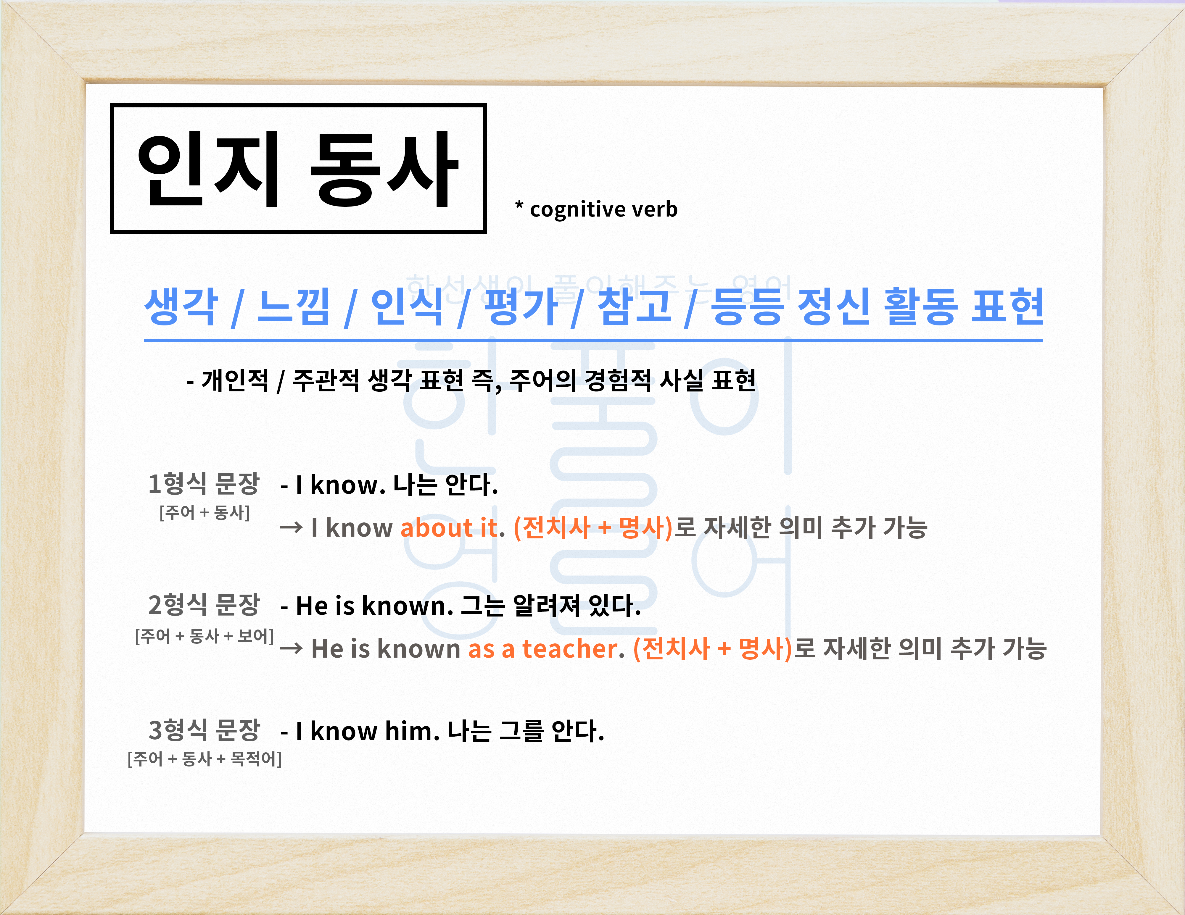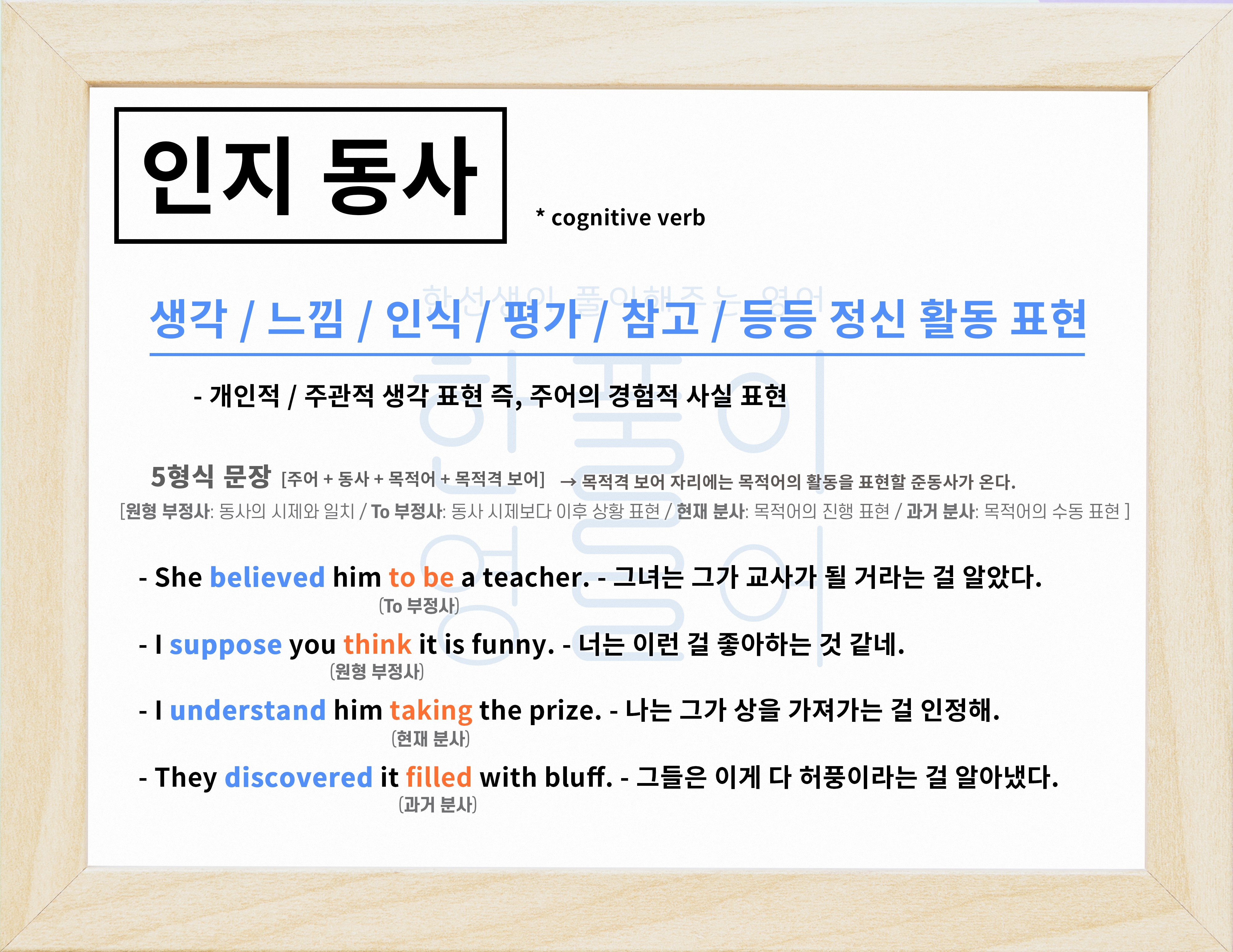 이번 시간엔 인지 동사라고 불리는 단어 개념과 예시들을 알아봤습니다.