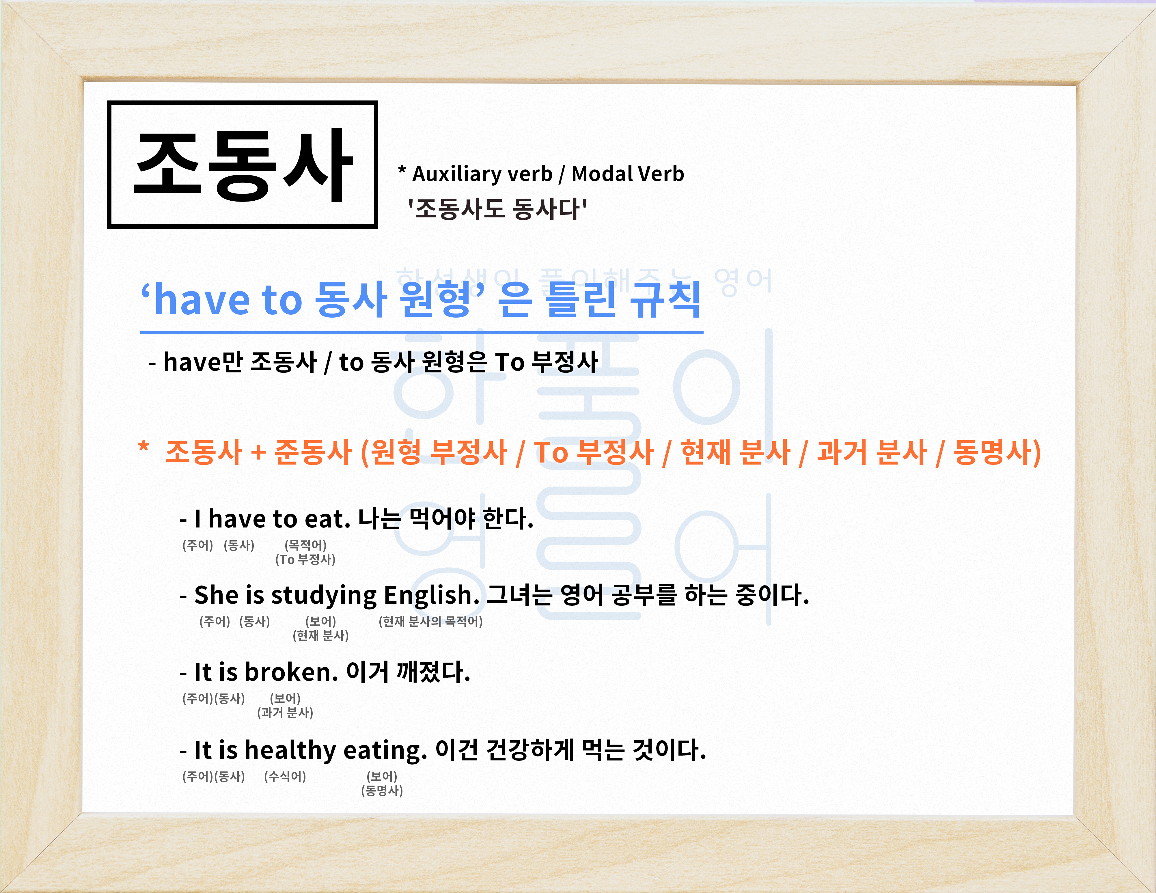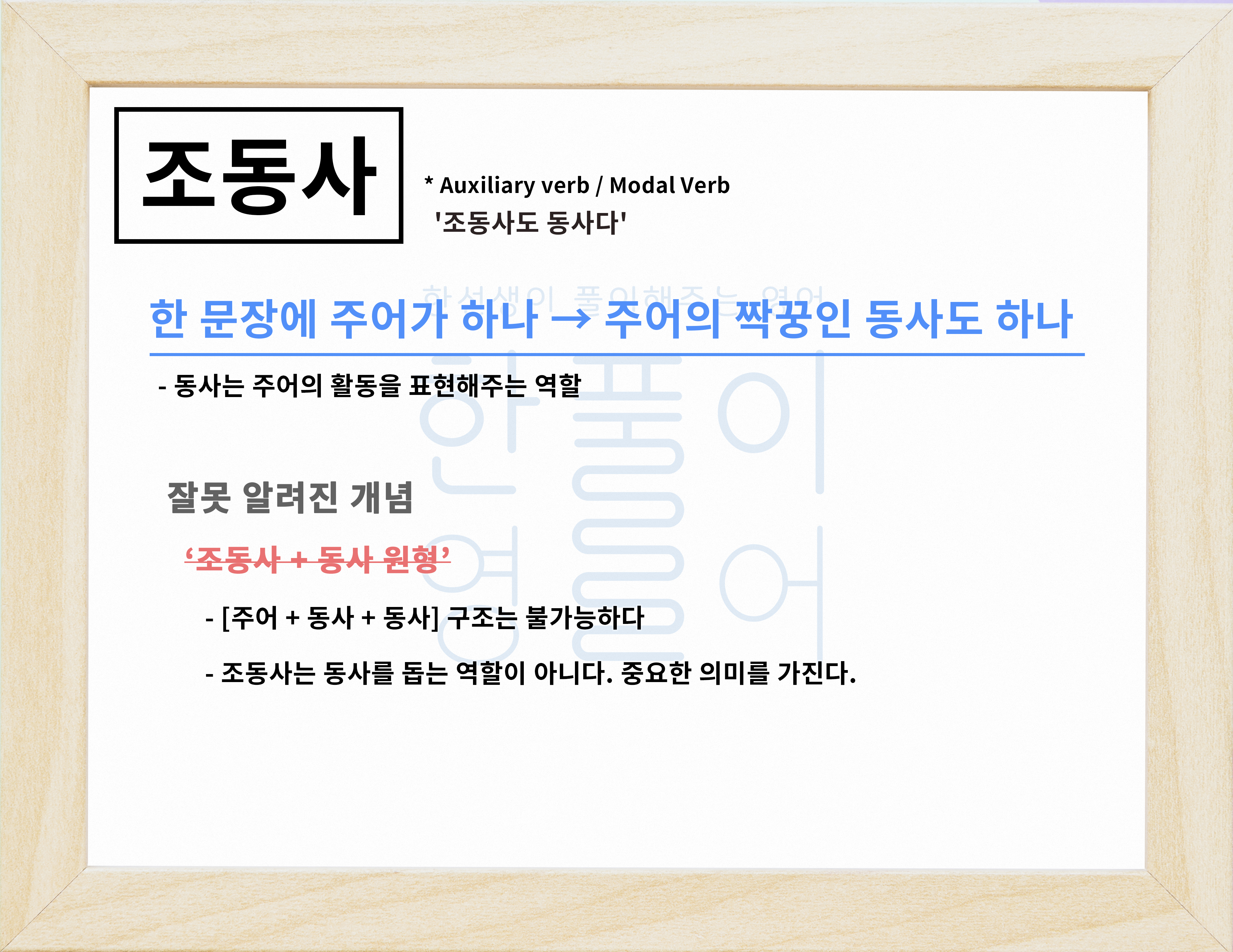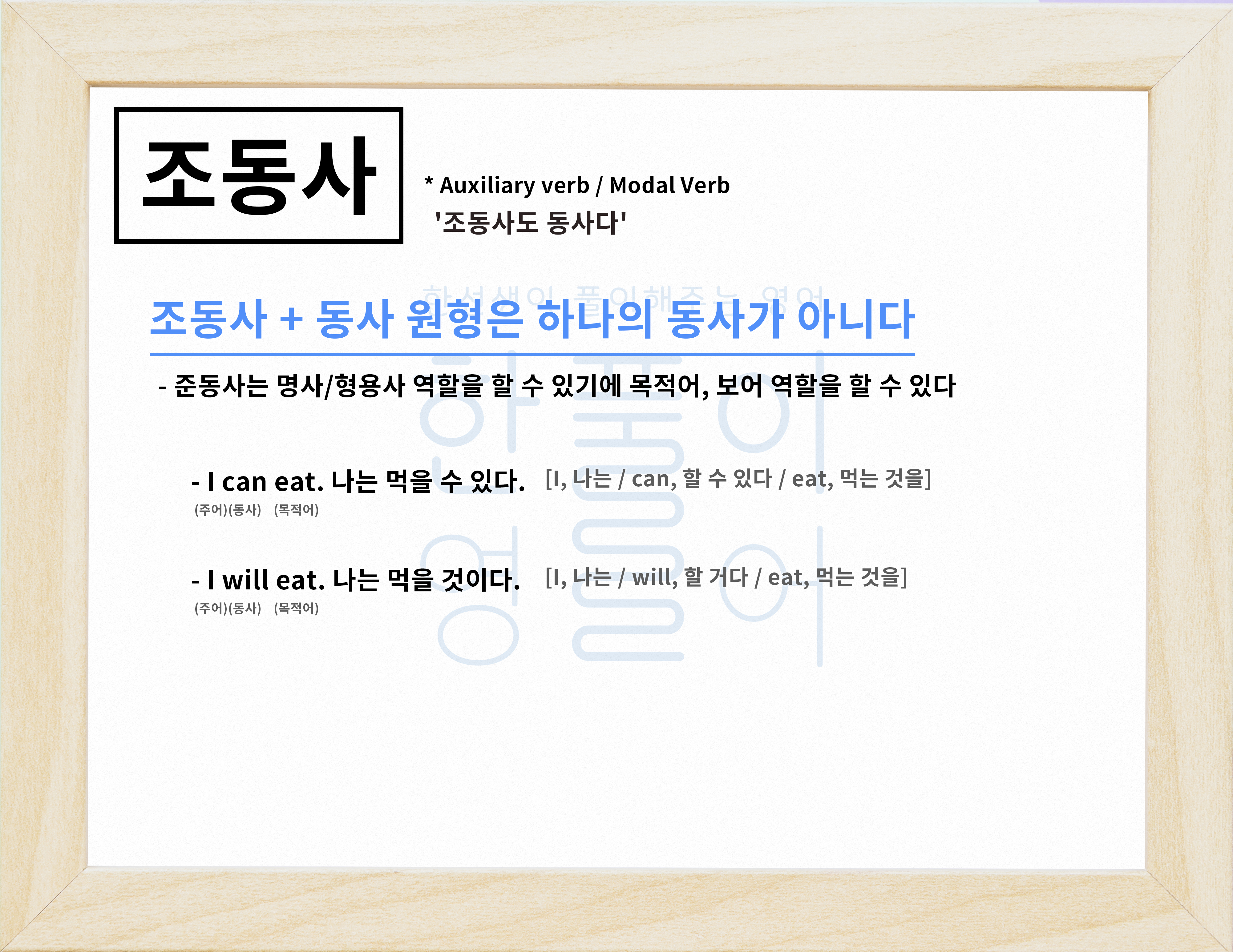 그래서 문법 공부를 할 때 조동사는 진짜 동사(본동사)를 돕는다