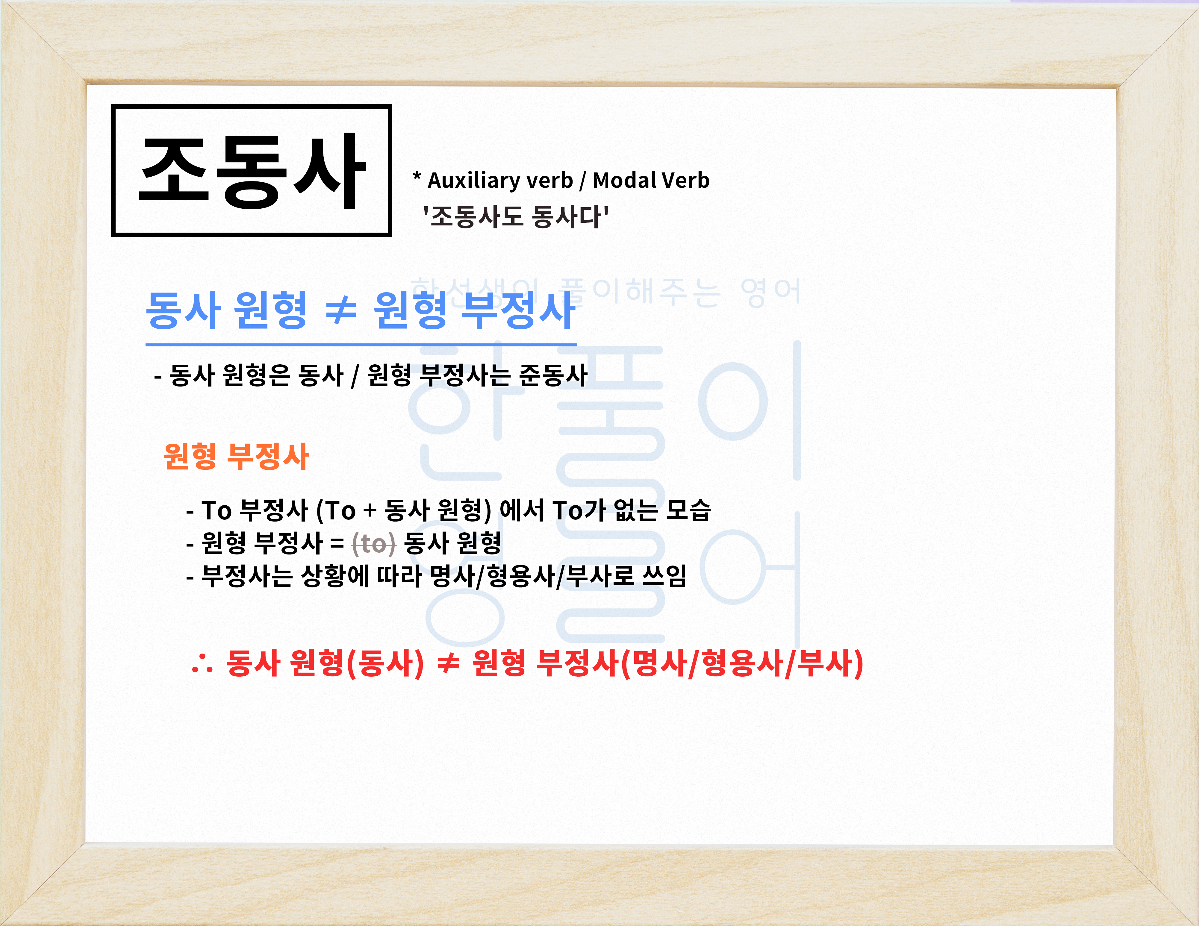 결국 조동사 + 동사 원형이라는 개념은 조동사 + 원형 부정사인데