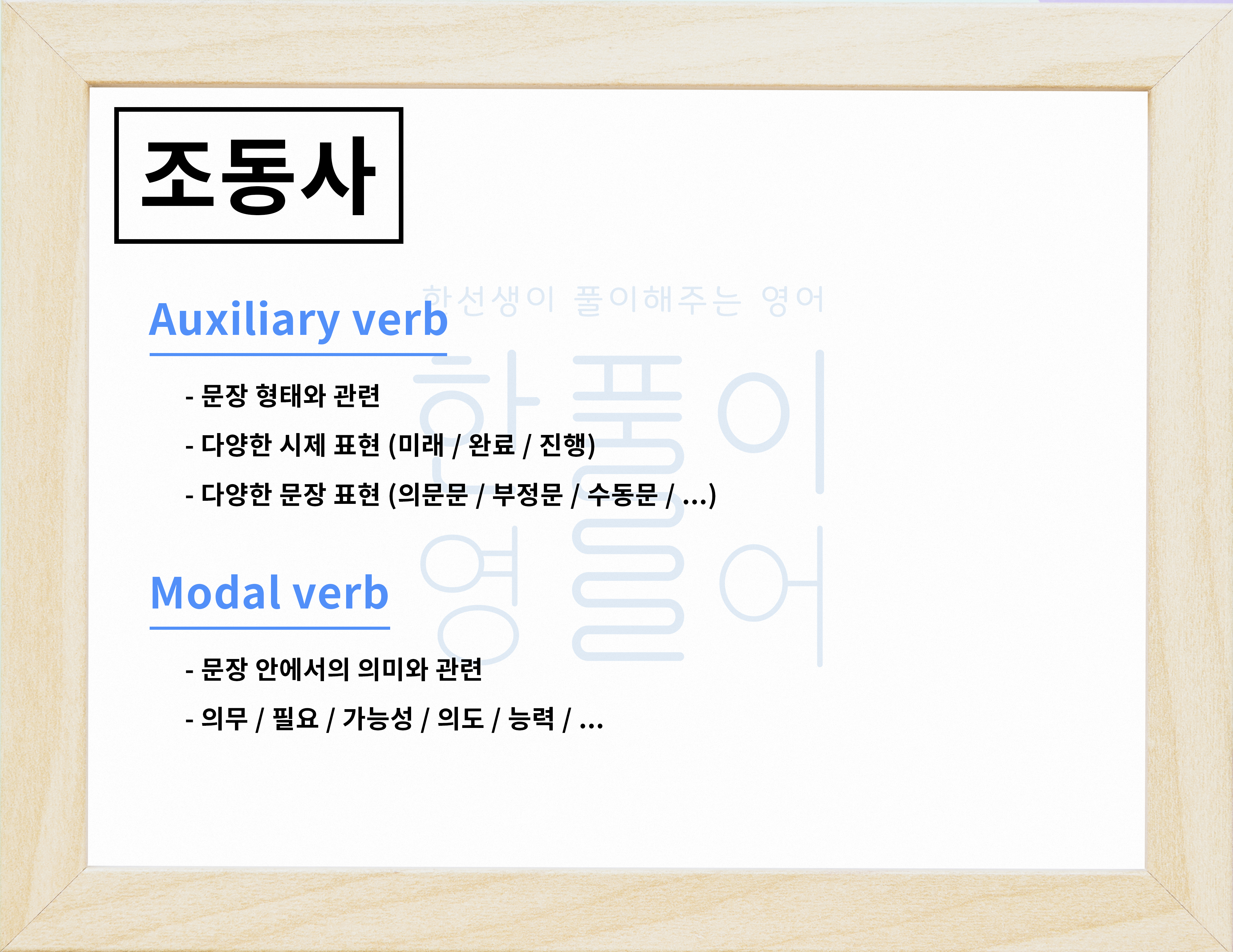 그리고 또, 조동사가 이렇게 auxiliary와 modal로 나뉜다는 개념을 막 외우진 않으셔도 돼요.