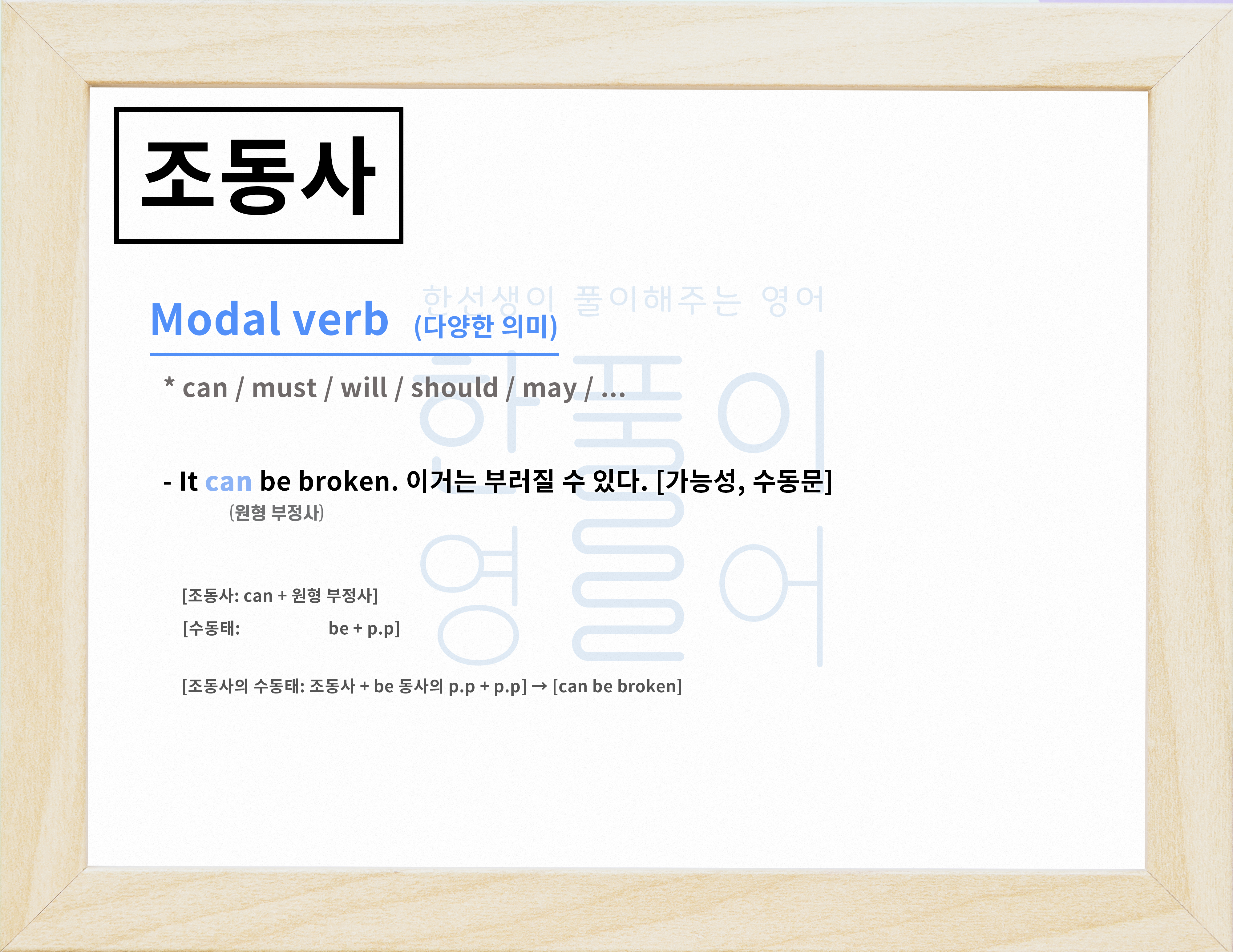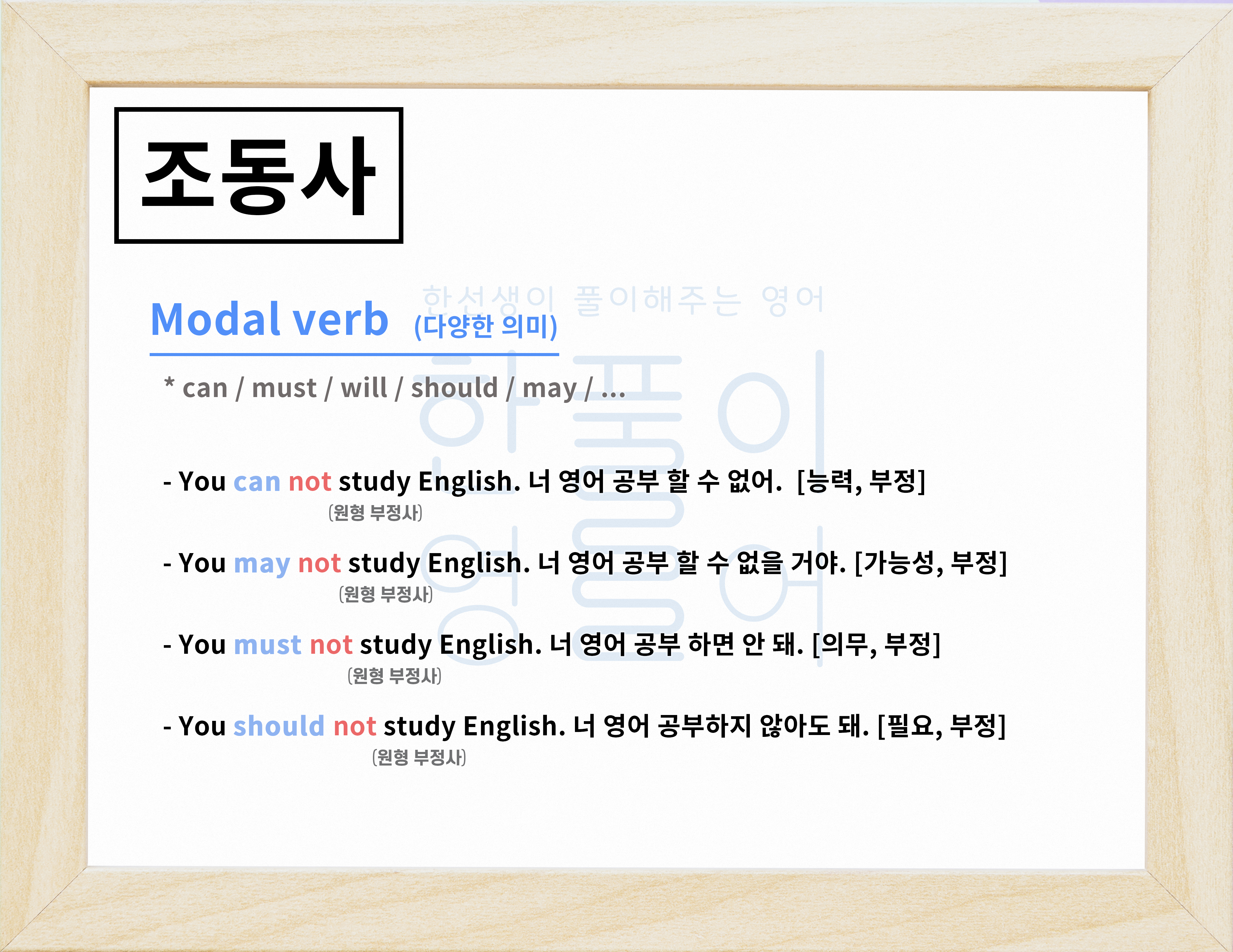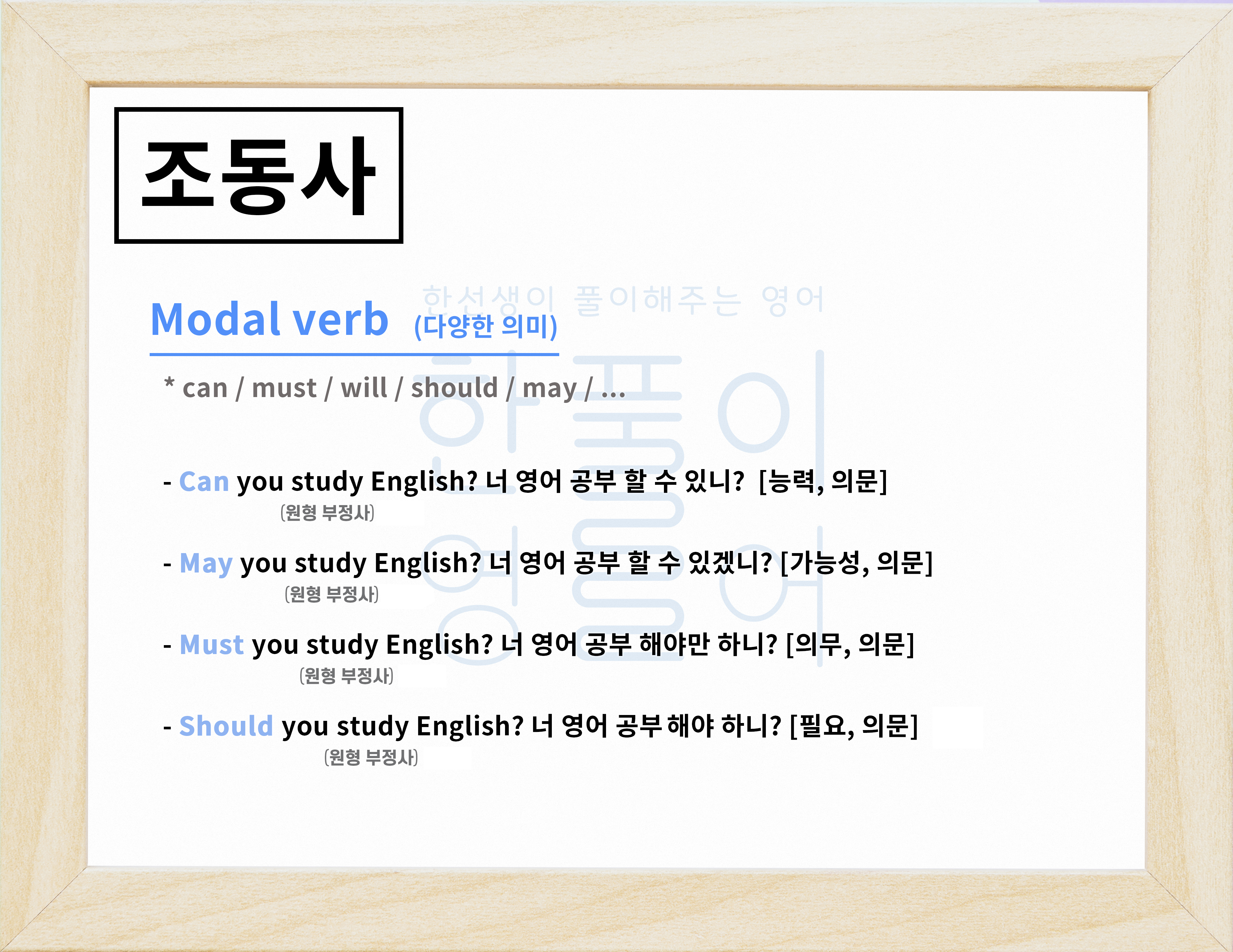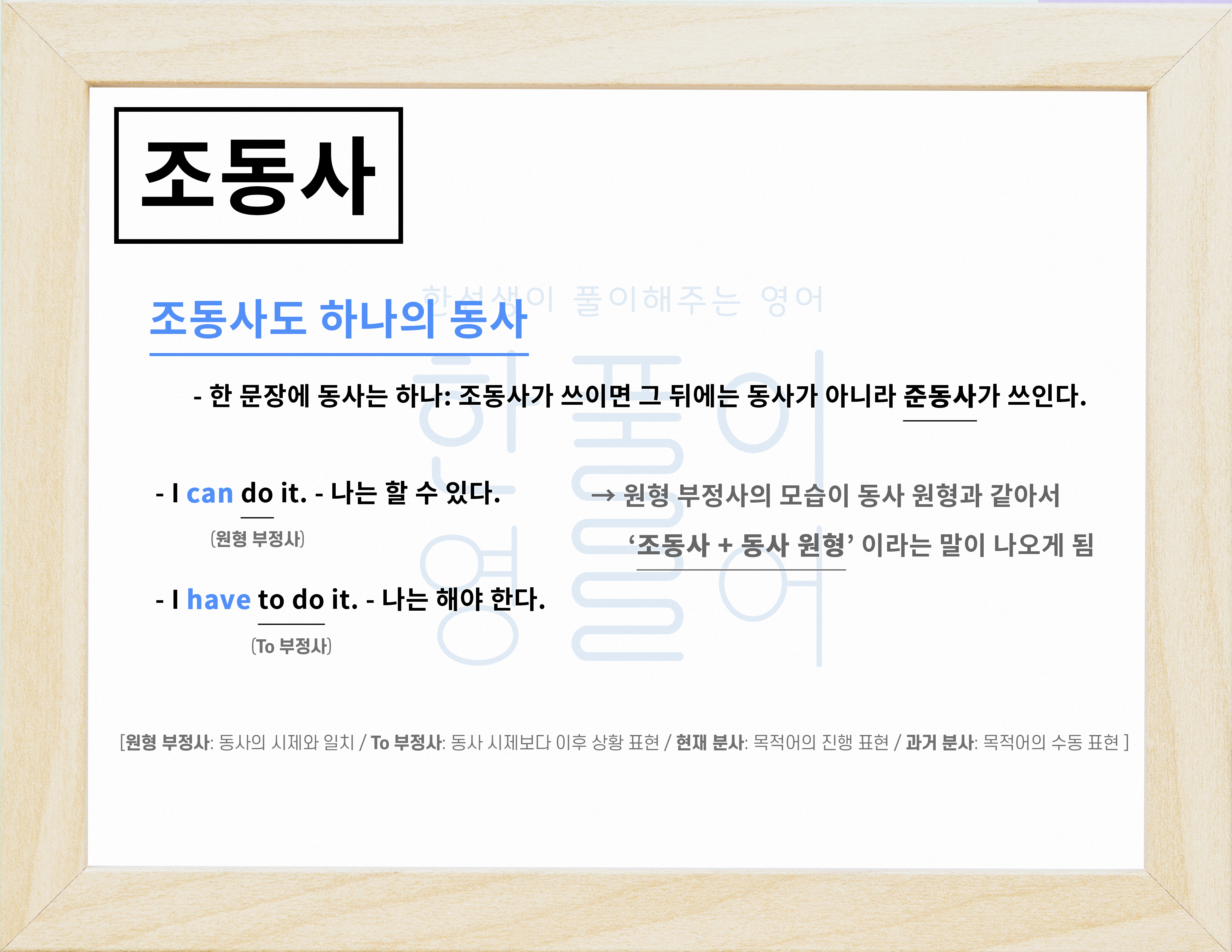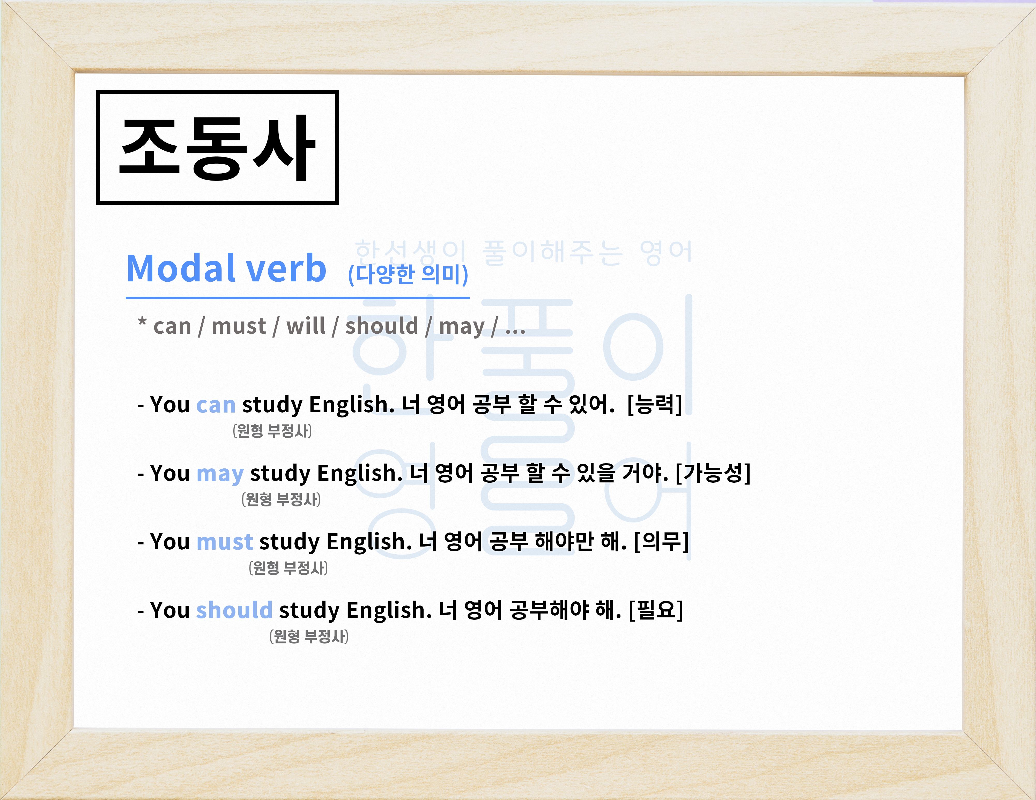 ‘조동사 + 동사 원형’ 이라는 말이 여기서 나오게 된 거예요.