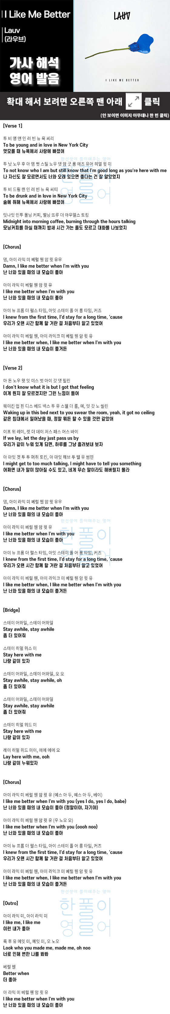 I Like Me Better - Lauv (라우브) [가사 해석, 번역 / 영어 한글 발음]