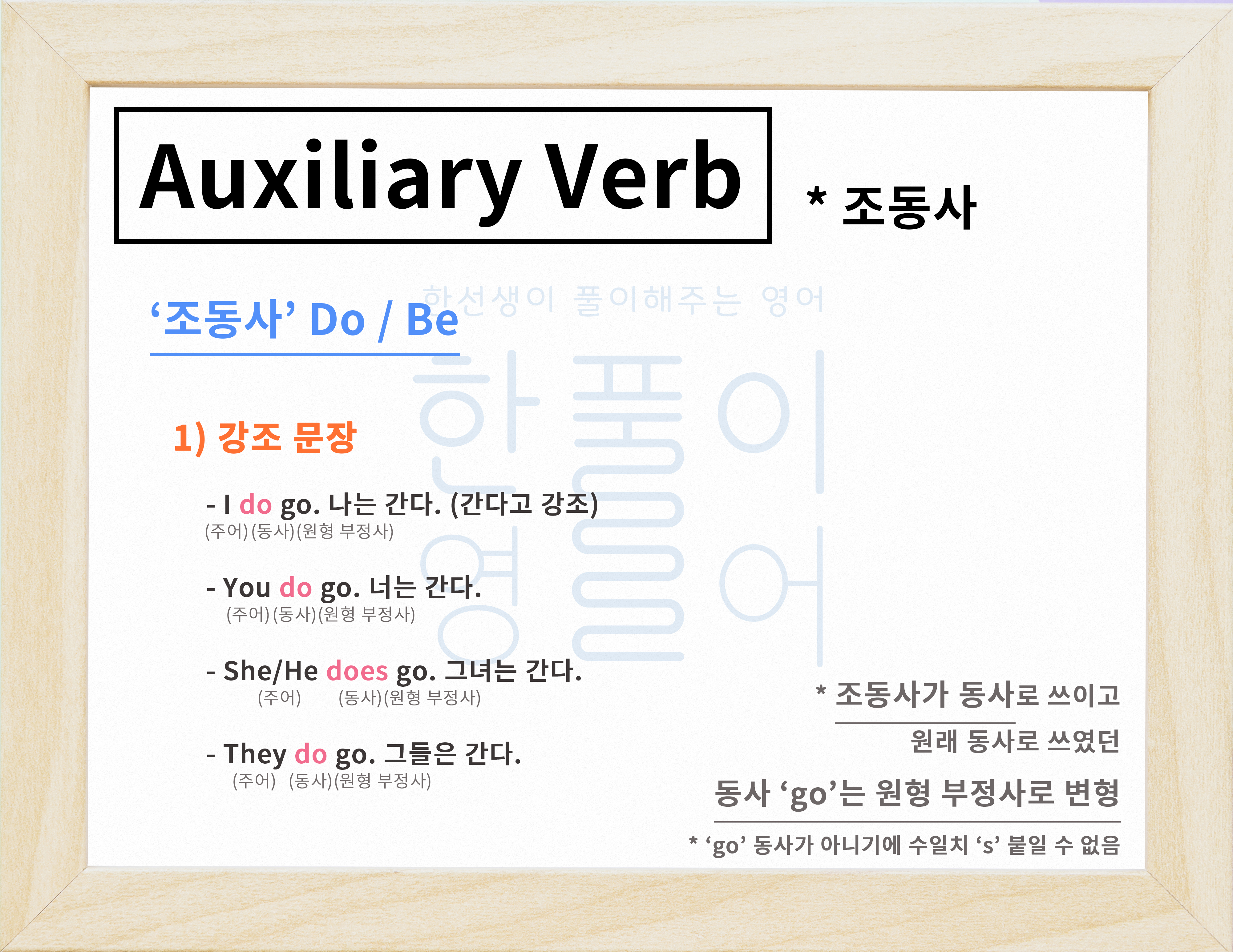 이때 원래 동사였던 go는 do, 조동사라는 동사가 왔 으니