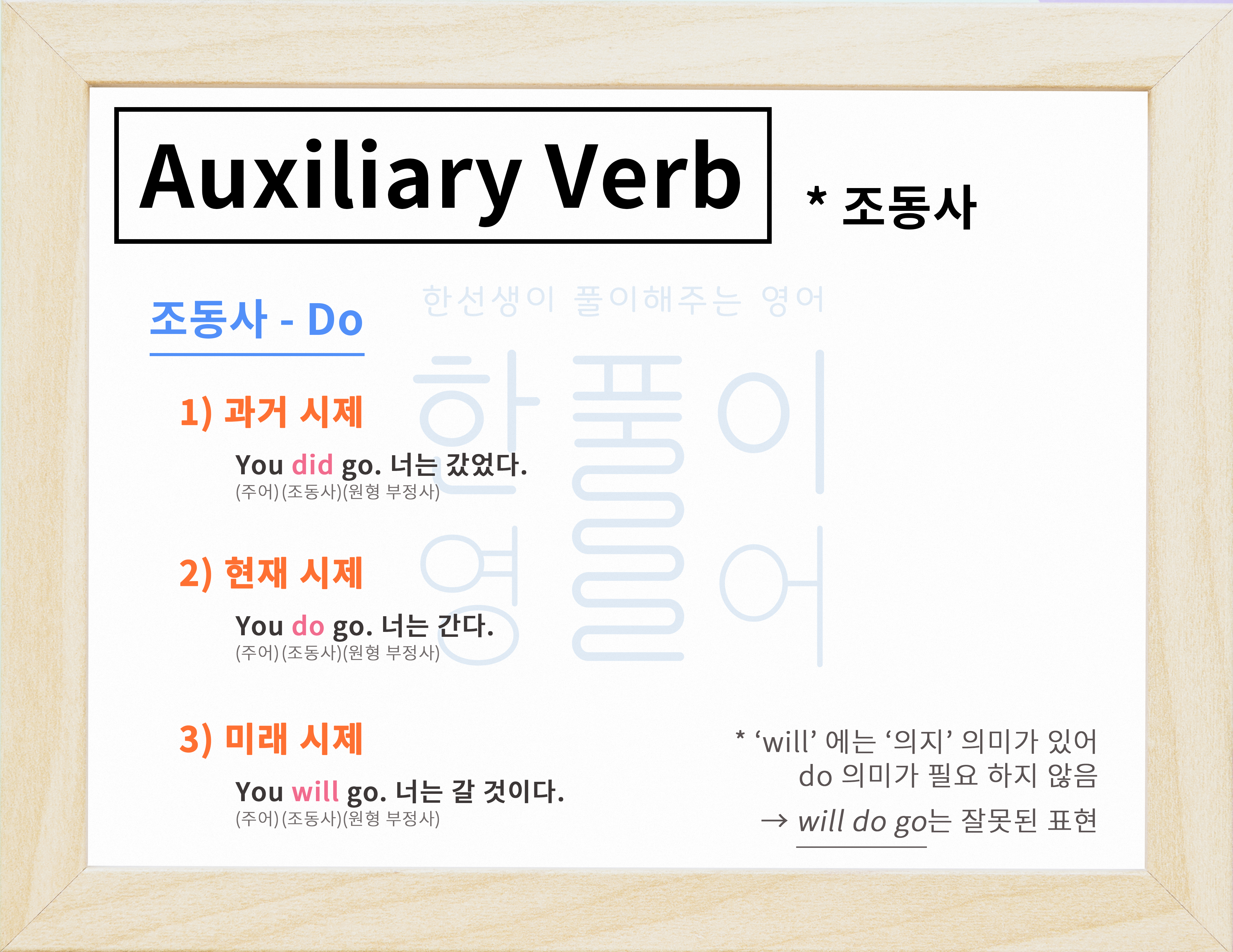 Auxiliary Verb 종류에는 Do / Will / Have / Be / ... 등등 있다고 했습니다