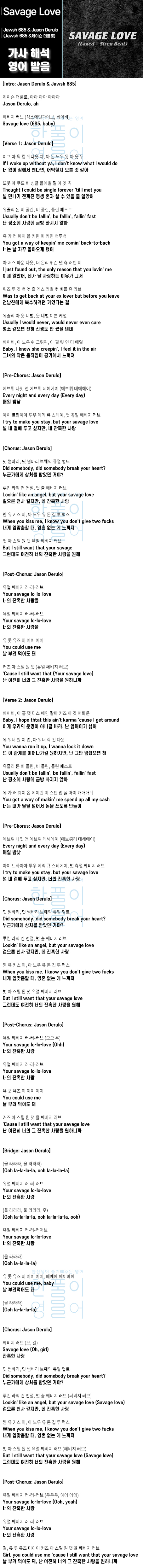 Savage Love (Laxed - Siren Beat) - Jawsh 685 & Jason Derulo (제이슨 더룰로) [가사 해석 / 영어 한글 발음]