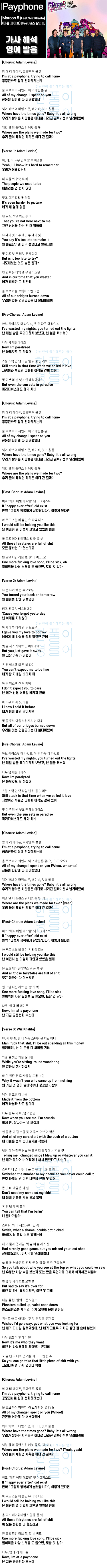 Payphone (Feat.Wiz Khalifa) - Maroon 5 (마룬 파이브) [가사 해석 / 영어 한글 발음]