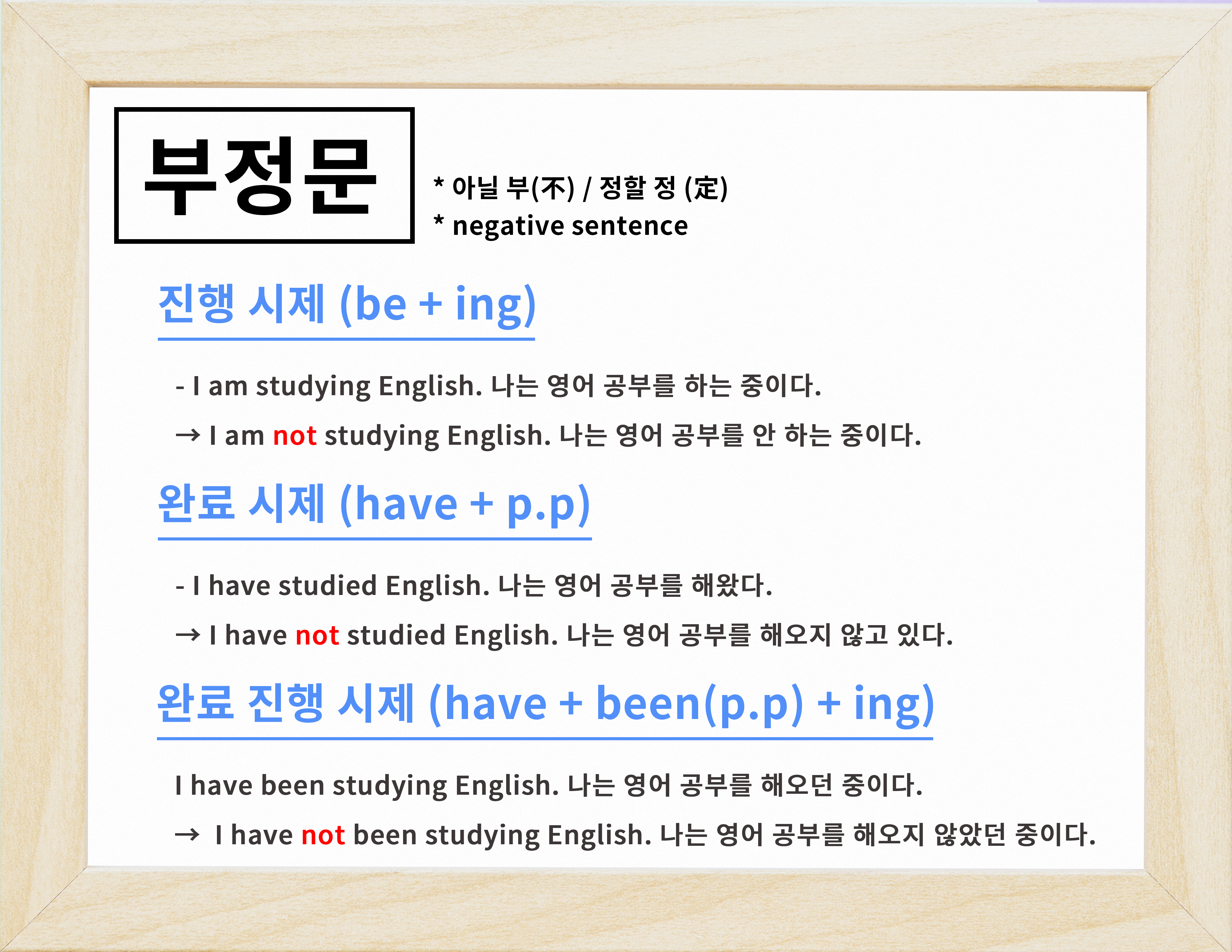 이번 시간엔 이렇게 부정문에 대해서 알아보는 시간을 가져봤습니다.