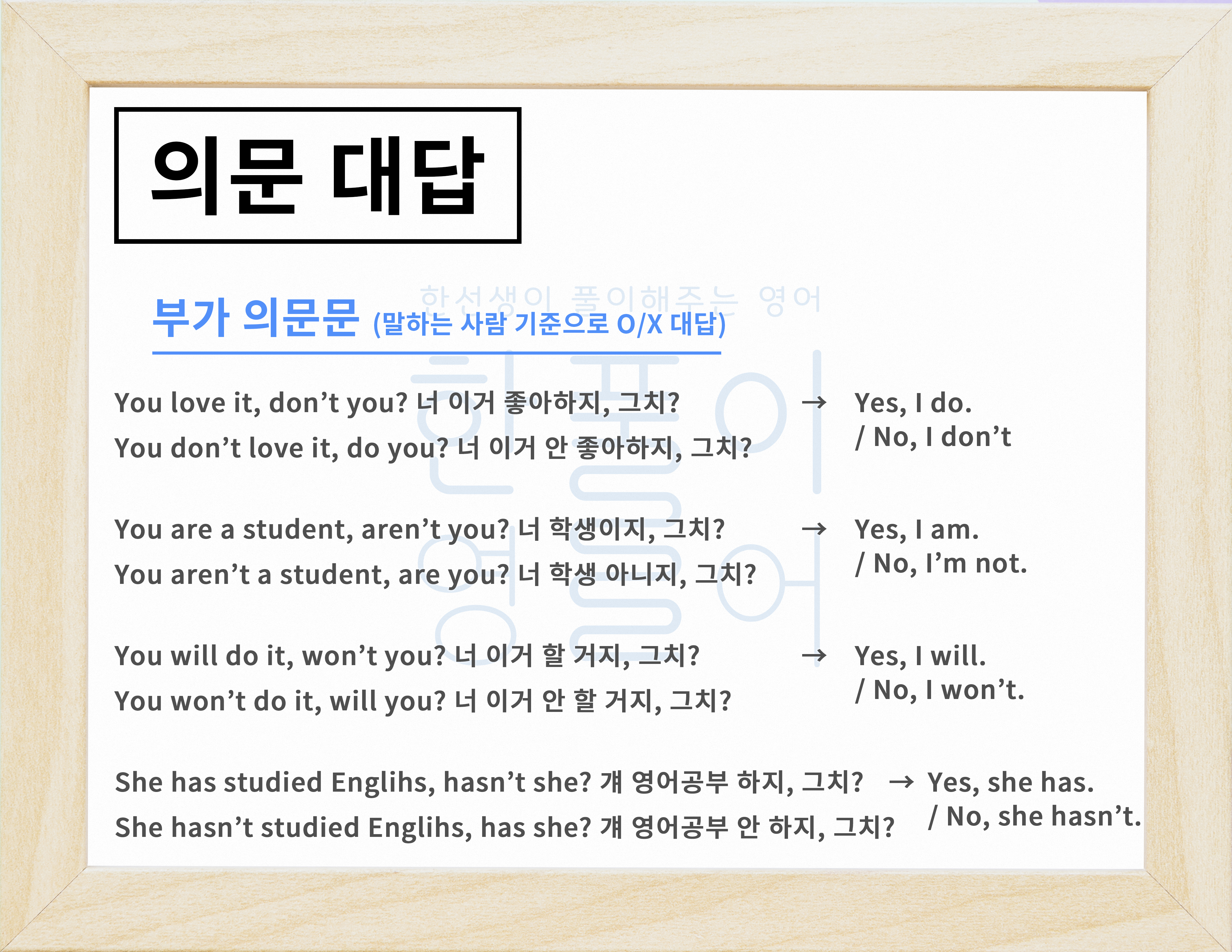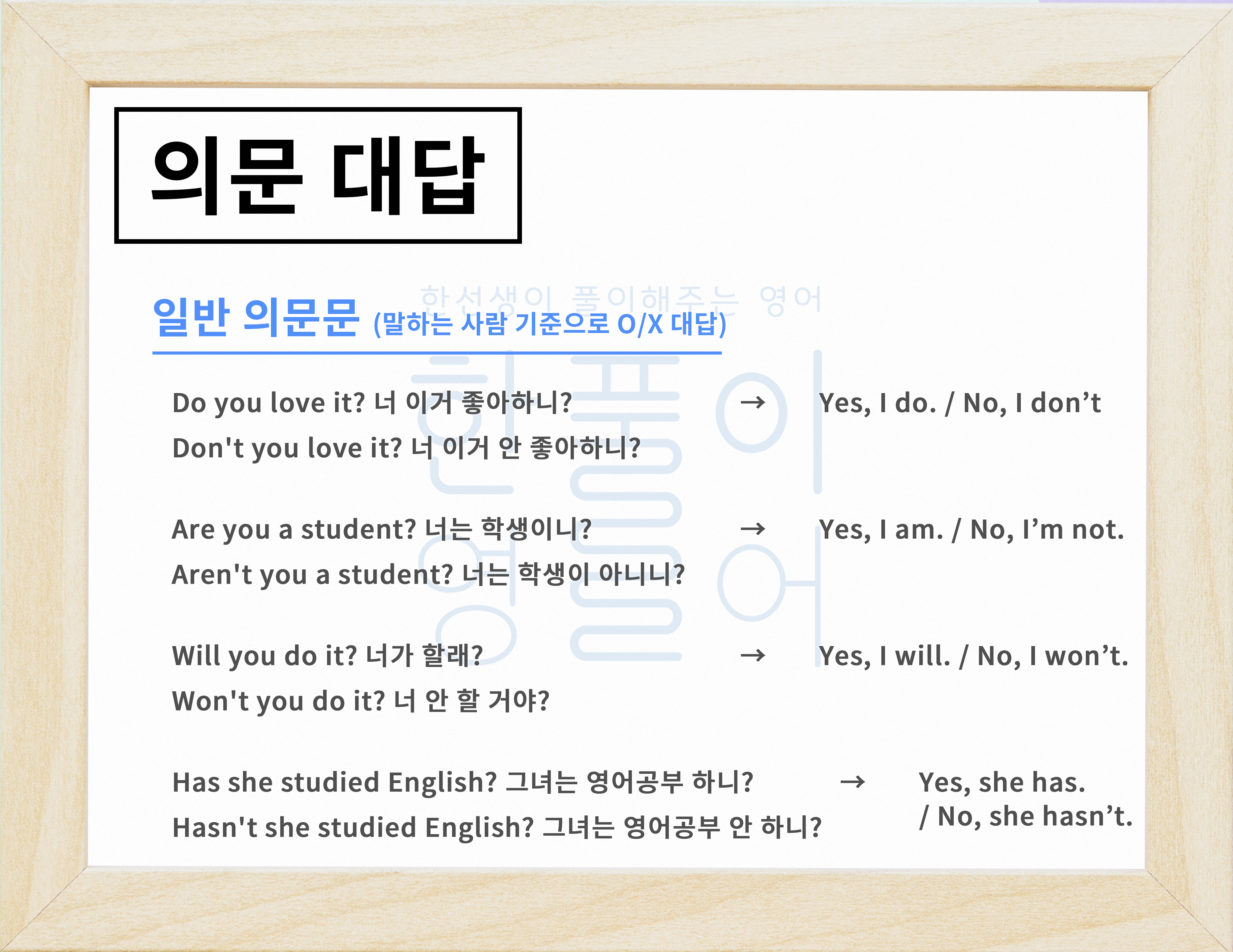 이번 시간엔 그 의문문에 대한 대답은 어떤 식으로 이루어지는지 알아보도록 해볼거예요.