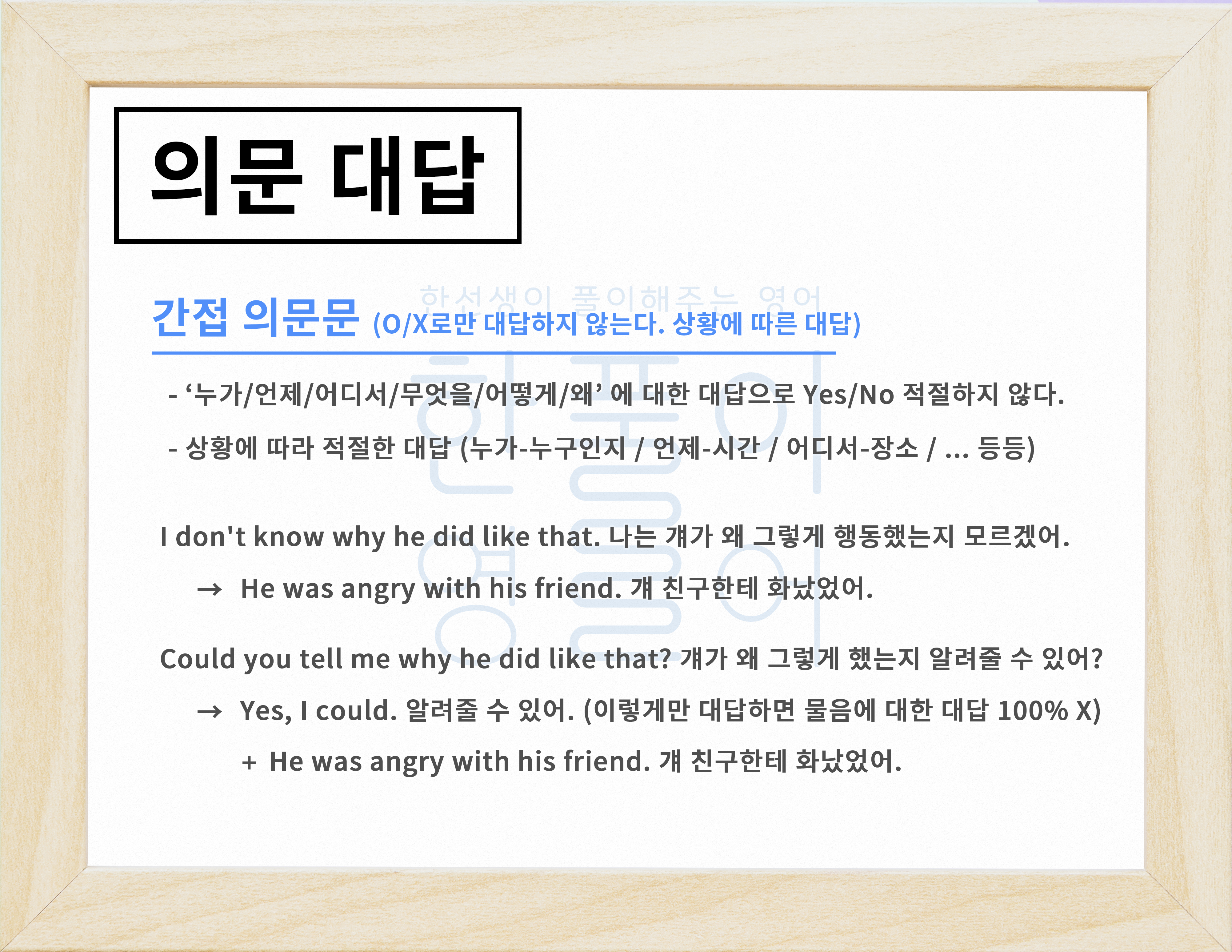 의문문(+의문사)에 대한 대답을 하는 방법과 규칙 [영어문법풀이 #73]