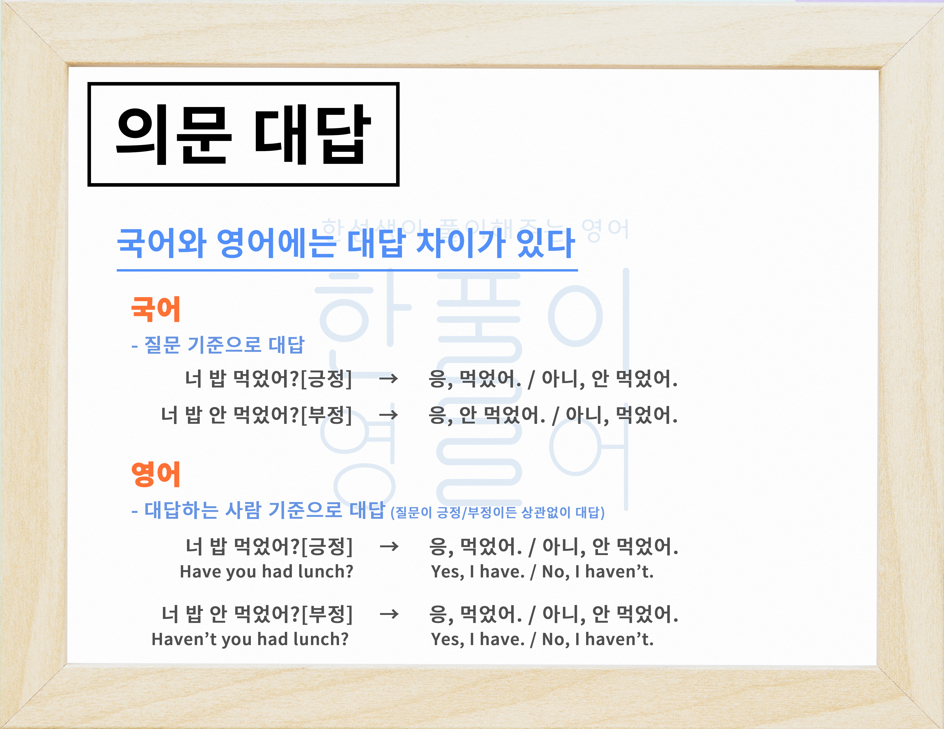 일단 기본적으로 물음에 대한 대답은 국어와 조금 다릅니다.