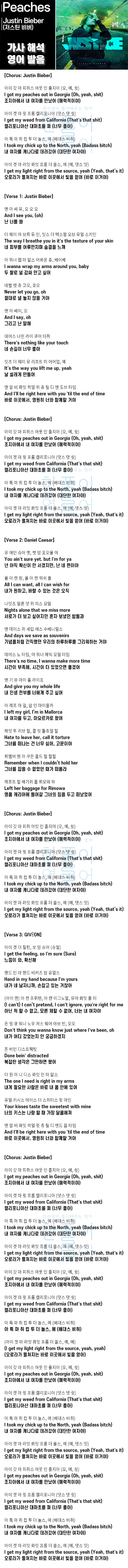 Peaches - 저스틴 비버(뜨또) Justin Bieber [가사 해석, 번역 / 영어 한글 발음]