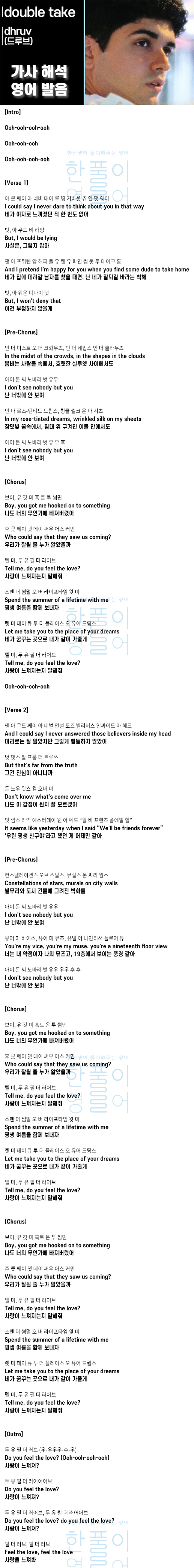double take - dhruv (드루브) -틱톡 [가사 해석, 번역 / 영어 한글 발음]