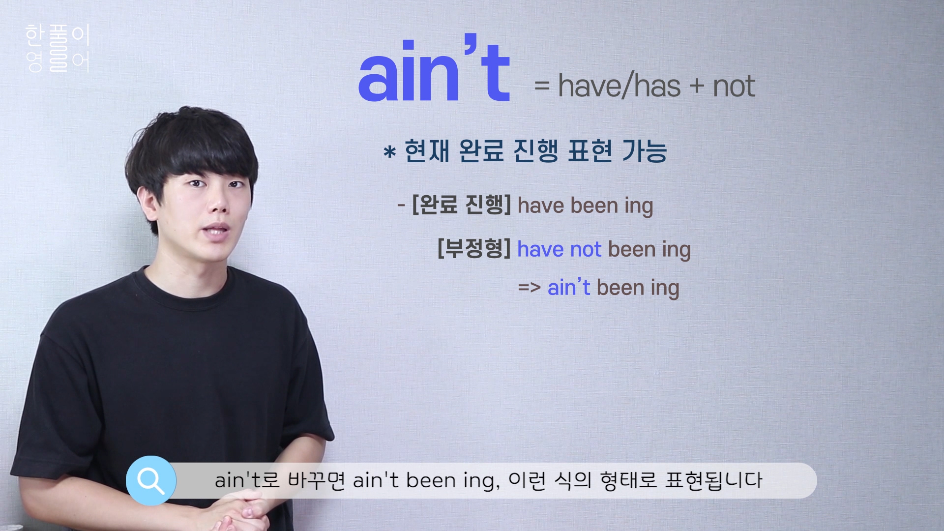 진행 시제의 부정형에서도 ain't가 사용될 수 있습니다.