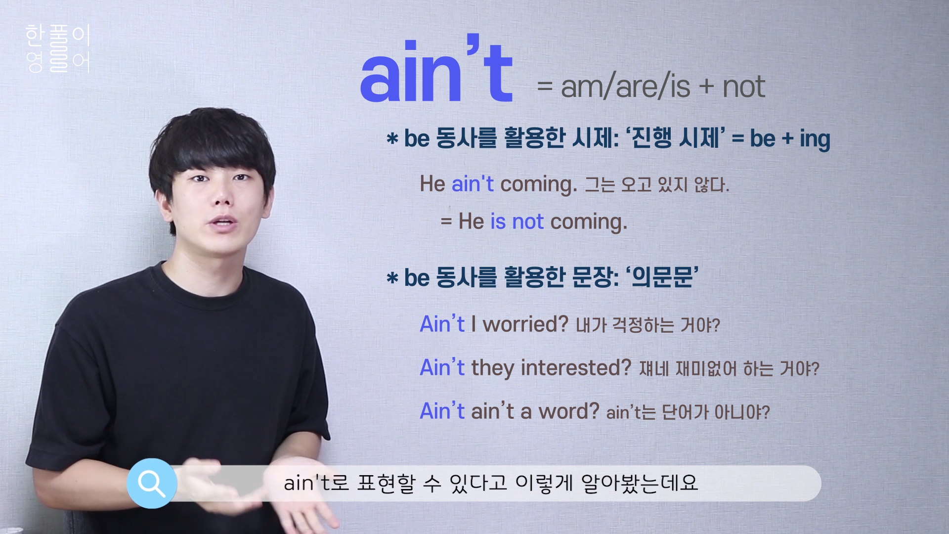 하지만 사전 검색하면 ain't가 나오긴 합니다.