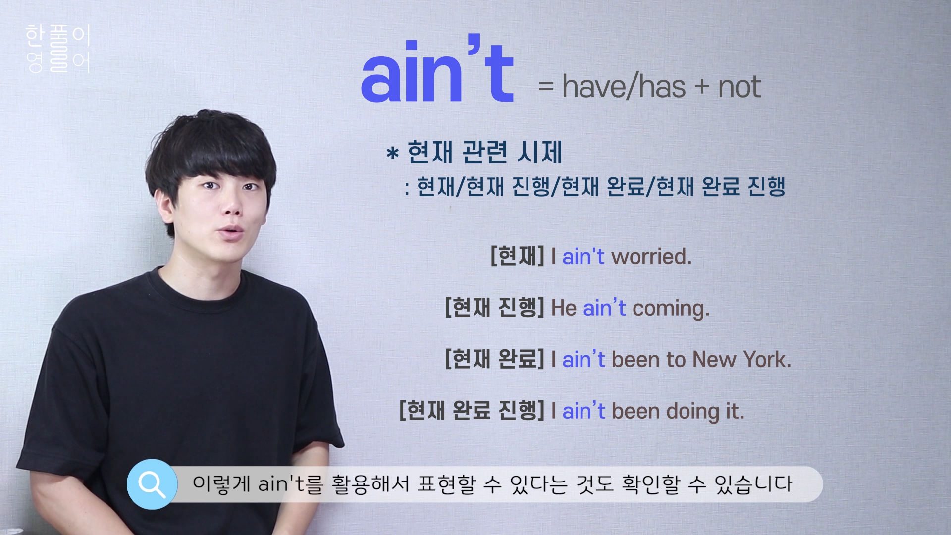 지금까지 본 문장만 보면 ain't로 4가지 현재 관련 시제를 표현할 수 있습니다.