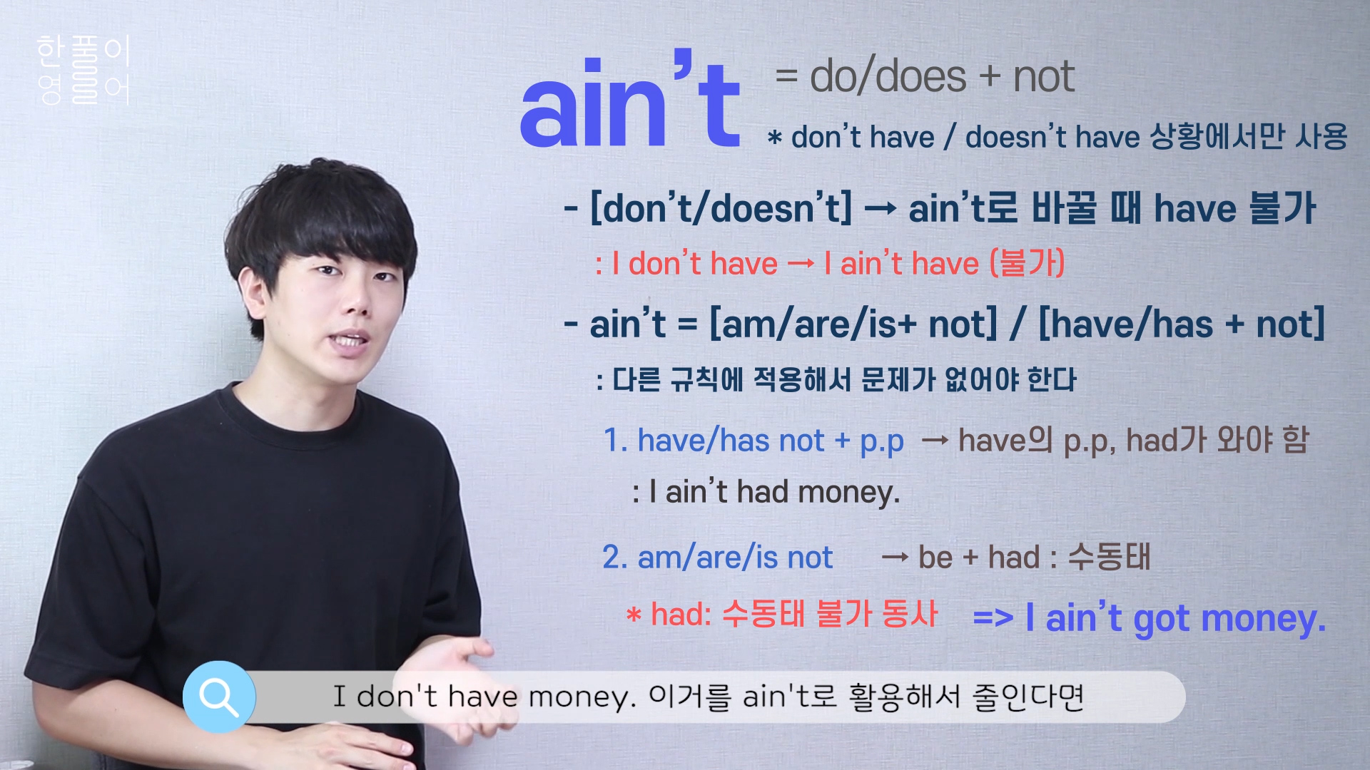 결국 He ain't had money. 이렇게 표현할 수 있게 됩니다.